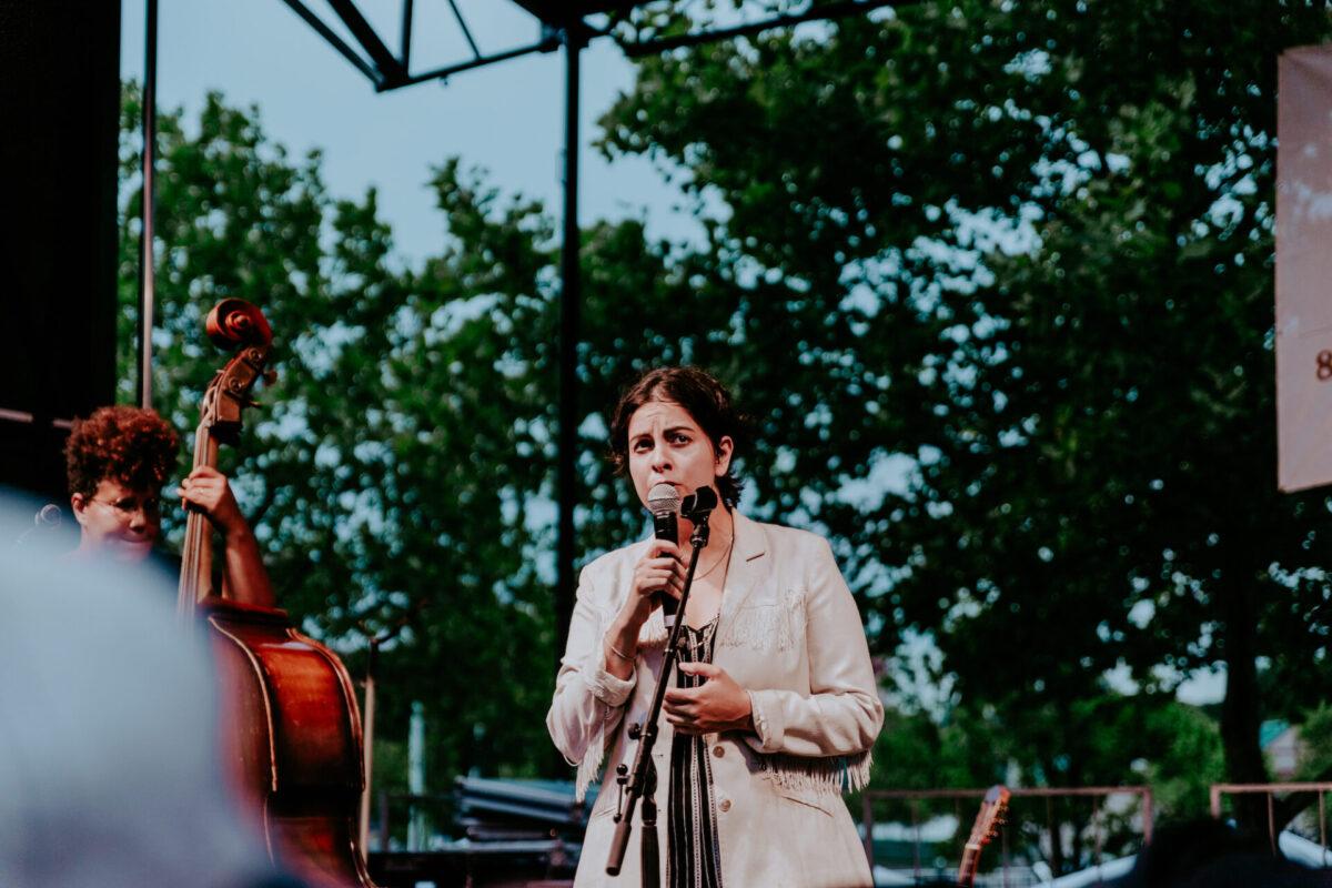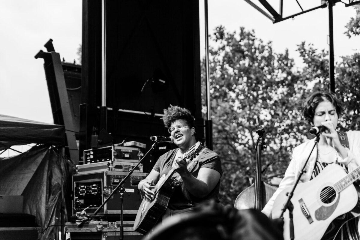 Early Friday evening concert goers lounged on picnic blankets before the Marina Stage, despite bruise-colored clouds threatening rain. The Nashville power trio Bermuda Triangle were undeterred by the whipping winds and distant thunder. They opened with “Tear Us Apart,” Brittany Howard of Alabama Shakes plucking at an upright bass. On “Suzanne,” Howard’s voice took the forefront, dipping and rising with impressive range, drifting harmonies adding breathtaking tenderness.