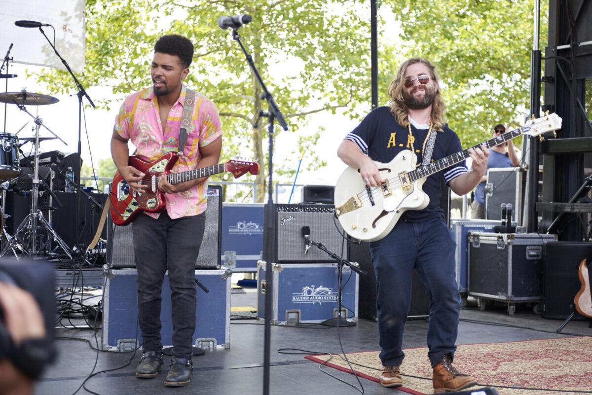 For suburban Philadelphia native Devon Gilfillian, today’s set on the #XPNFest Marina Stage was a homecoming show of sorts, and the songwriter quickly got a groove going to celebrate. Now based in Nashville, Gilfillian’s chilled-out, bluesy tunes fit well in any region, especially during a breezy afternoon on the waterfront.