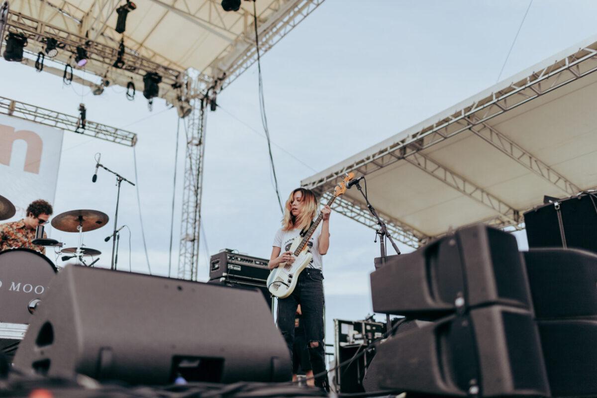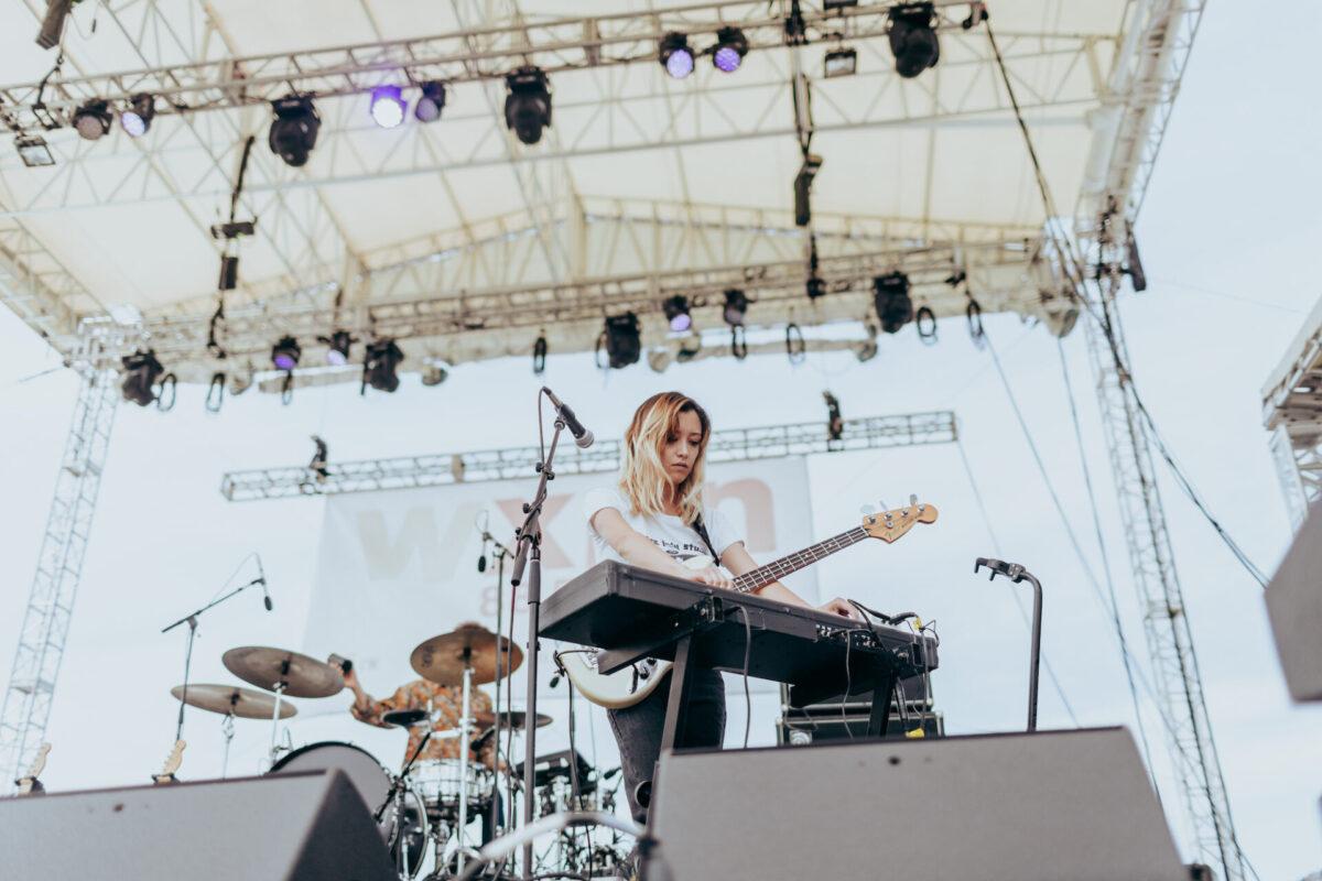Their next couple songs were a little groovy, as they were more heavy with drums, and the crowd was noticeably starting to loosen up. Their song “I Tried to Make you My Own” is a song that makes use of many elements and instruments, such as the keyboard, shakers, reverb, and a clip which sounds like a music box, so when the horn of the Camden Waterfront’s ferry went off, it just appeared to be another new element in he song.