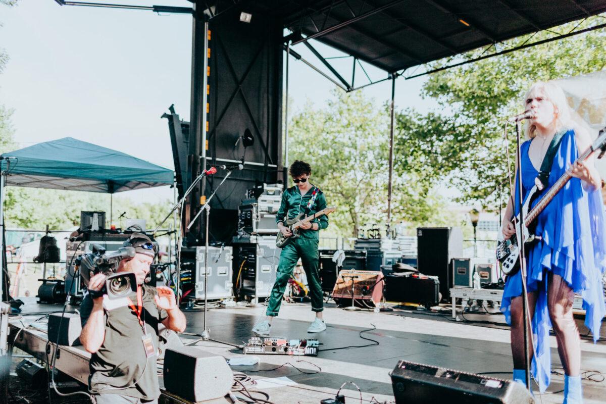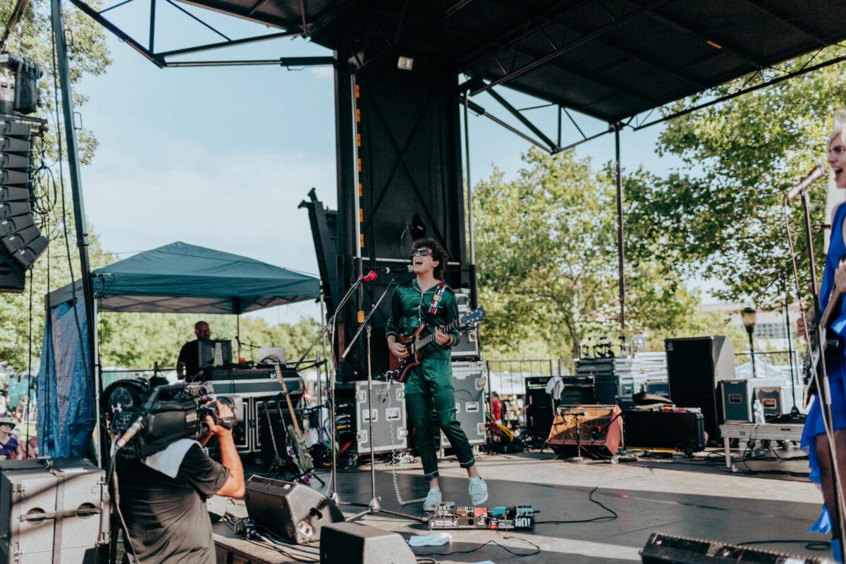 Brooklyn natives and WXPN regulars Sunflower Bean shared more of their Twentytwo in Blue record with the day two crowd as the sun beat down on the Marina Stage. To open the show, they played the fan favorite “Burn It,” and front woman Julia Cumming’s signature alto-toned vocals welcomed the crowd back to Twentytwo. Interspersed with quick drum fills and lead bass tones, the band was tighter than ever.