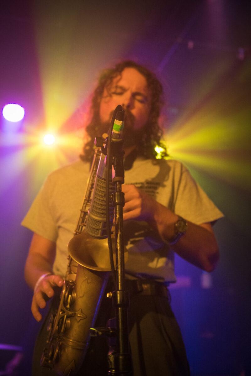 He brought a full band to the packed Underground Arts show, with his “dear friend and business partner” sax player Roy Molloy on his left at all times. Molloy stood out not only for his soaring sax, which is often front and center in Cameron’s songs, but also as his sits bemused on his stool, peering out into the crowd with only the subtlest expression, waiting for the next sax interlude. The crowd continually chanted “Roy” between songs, causing a noticeable warm flinch. The band was solid, with great interpretations of the Forced Witness witness material peppered with a few tracks from his debut, Jumping the Shark. Keyboardist and backing vocalist Holiday Sidewinder did a sublime job on the duet, “Stranger’s Kiss” (sung by Angel Olsen on Forced Witness). “Candy May,” “Studmuffin96,” “The Chihuahua” and “Marlon Brando” were the highlights for me.