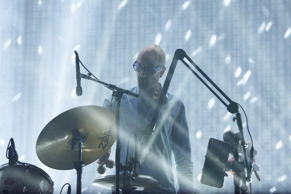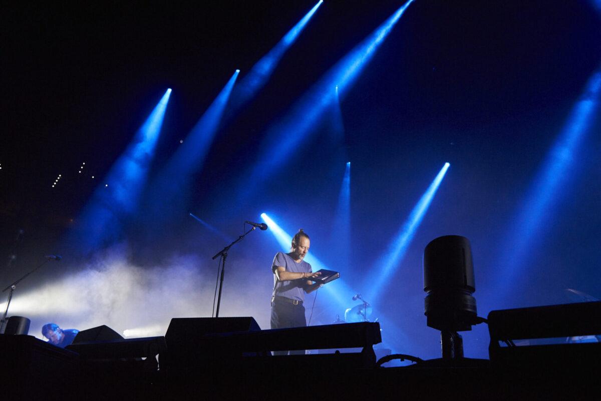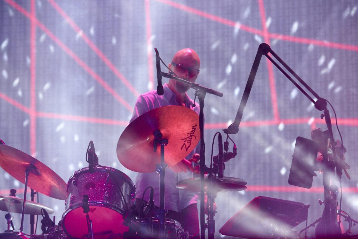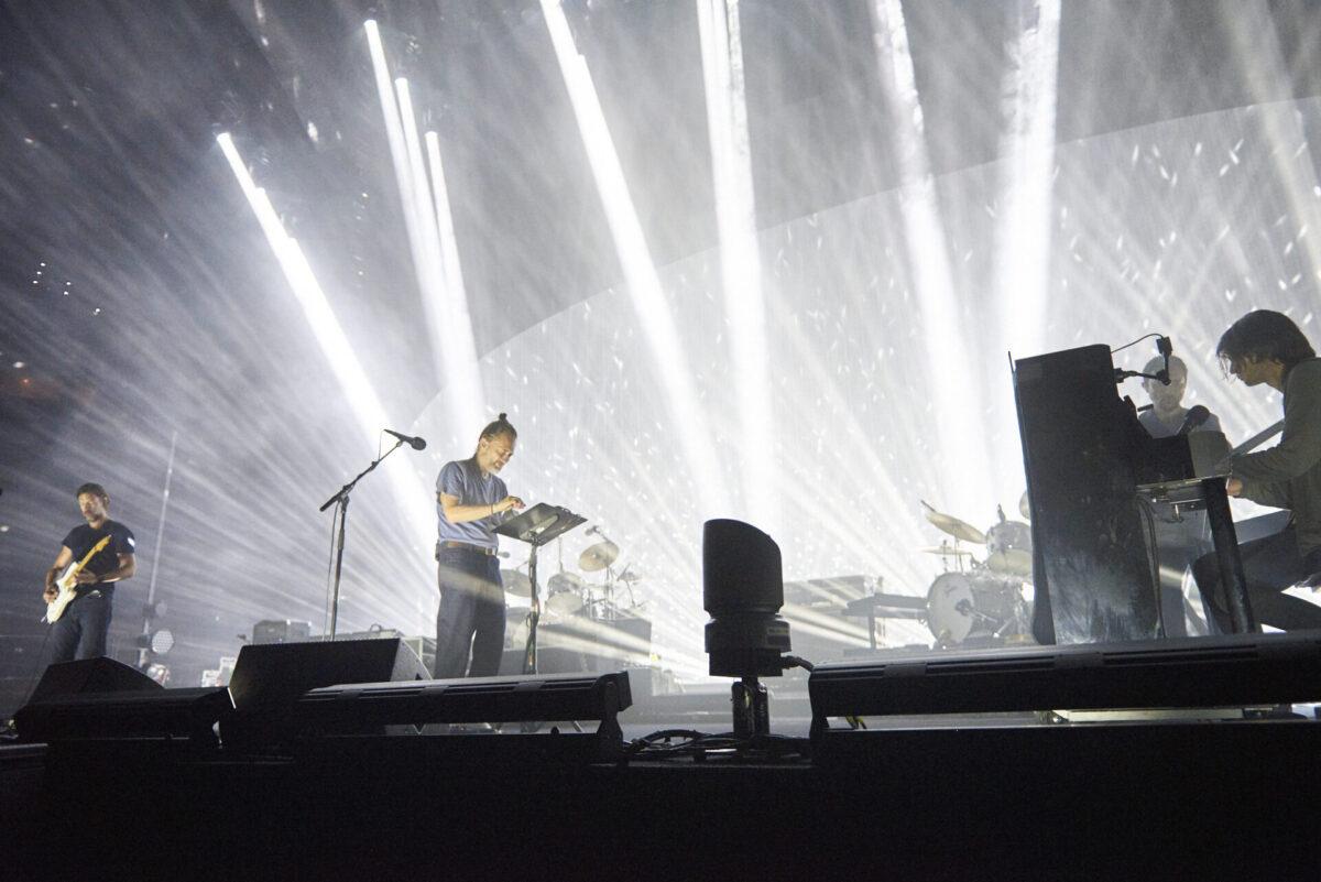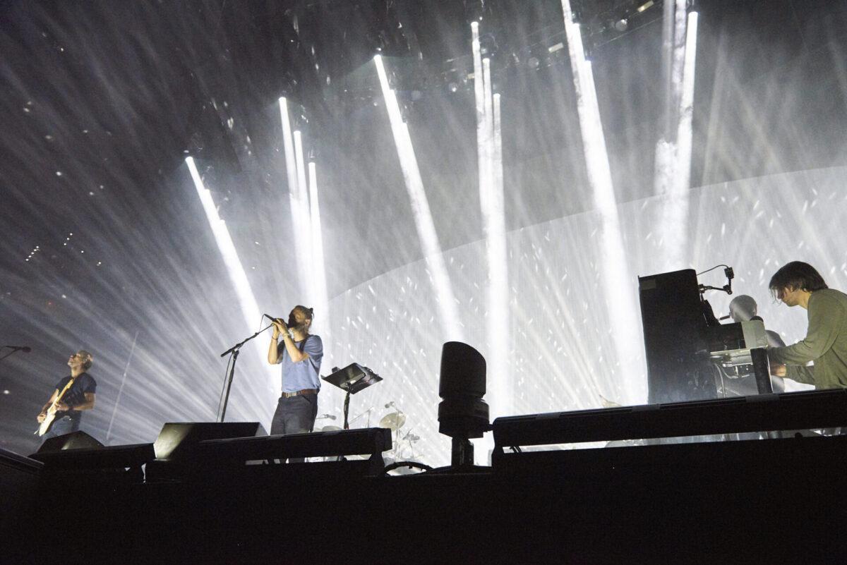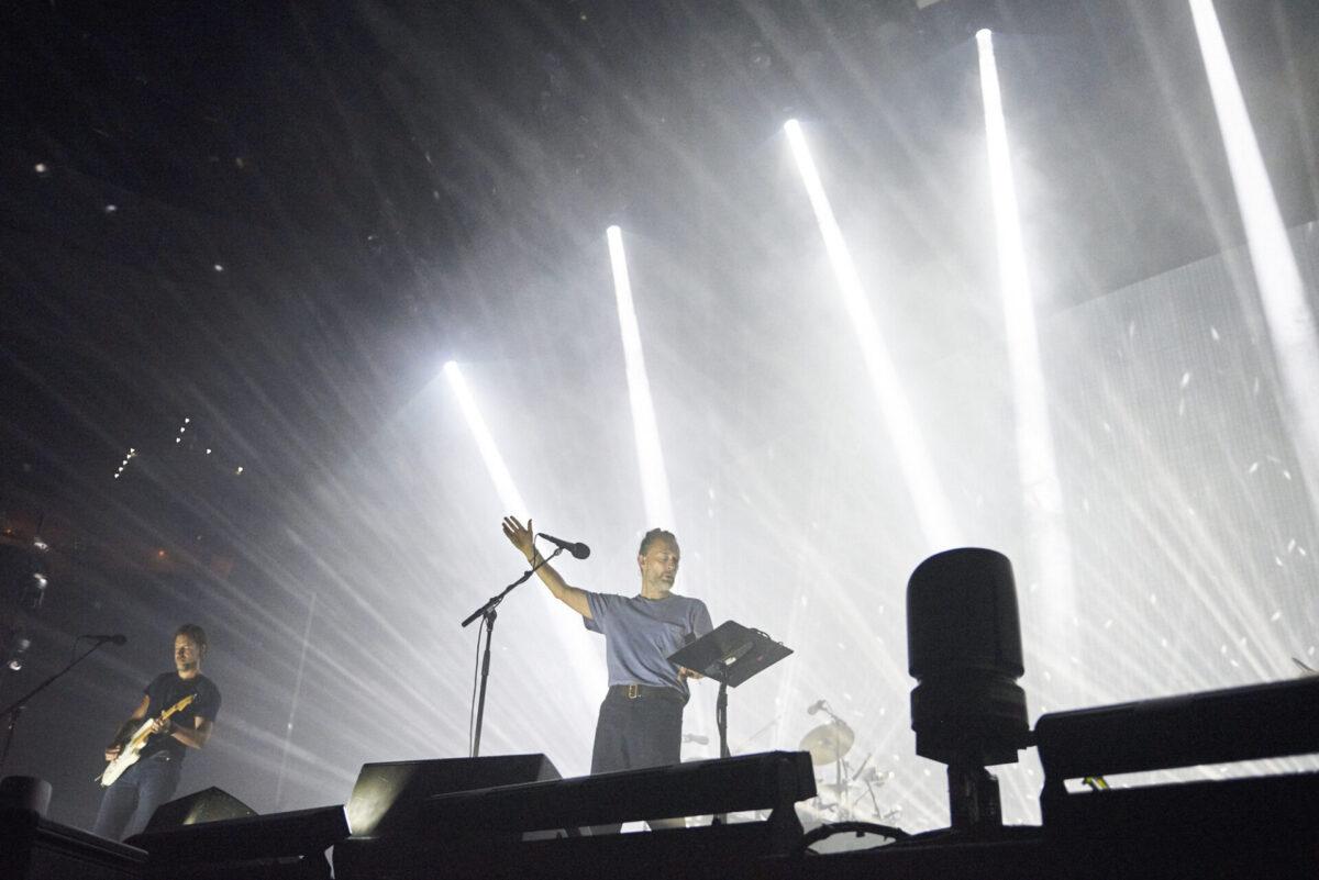 The transportive, transformative motif was baked into the visual presentation of the show as well. Beams of light would shoot into and wrap around the venue with ever-shifting colors and intensity. Meanwhile, a large elliptical screen over the stage projected images of all members of the band layered over each other as they performed, subtly reinforcing how utterly and unflinchingly each one functions and flourishes as part of the whole. The most thrilling intersection of all of these elements occurred during early knockout “Ful Stop”, where the lights and imagery picked up with the frantic pace of the song to simulate some kind of violent, Kubrickian space odyssey. Other highlights included underrated Hail to the Thief centerpiece “The Gloaming”, whose backing blips and beats almost approached Silent Shout territory, the sheer shock of hearing the rare, Romeo & Juliet soundtracking “Talk Show Host”, and main set closer “Idioteque”, which not only still sounds as alluringly alien as it did 18 years ago, but also lyrically prescient in a way I’m sure the band didn’t intend or hope.