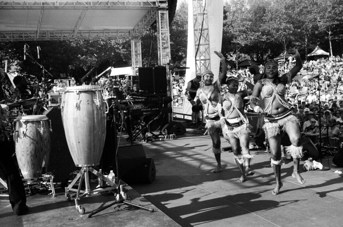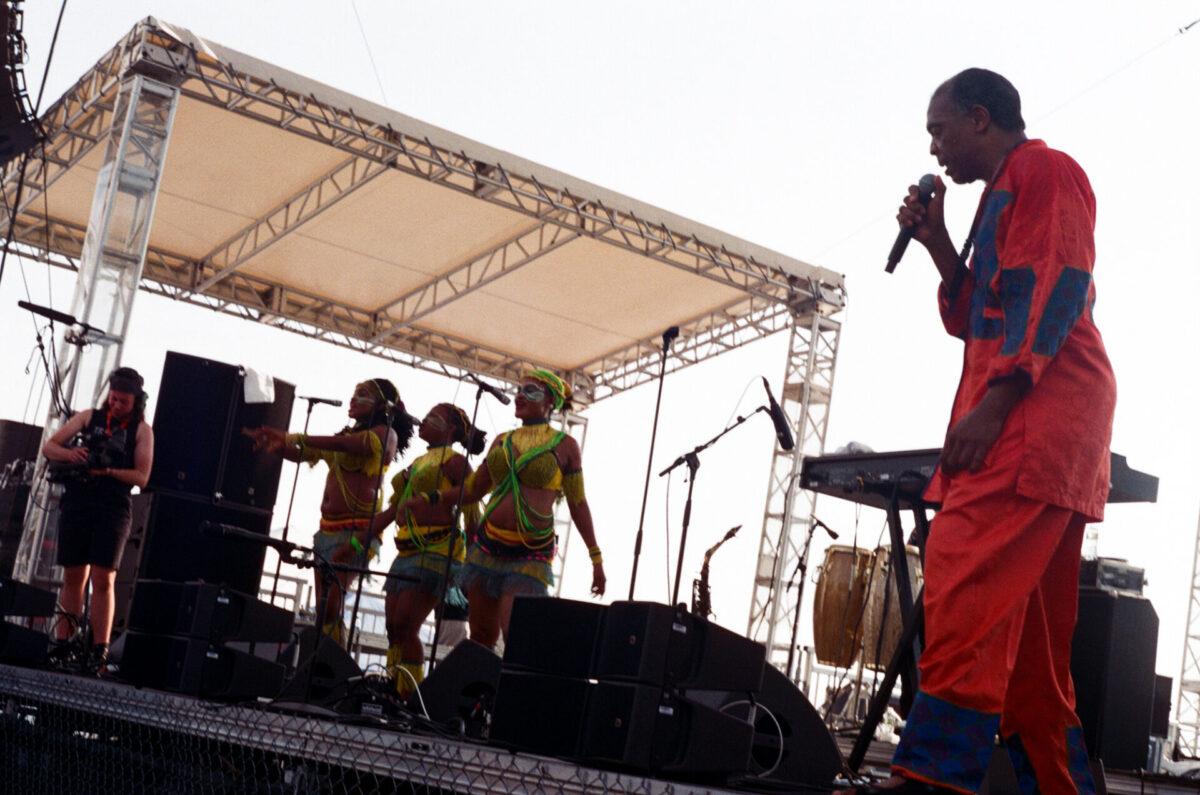 The high-energy Femi Kuti and the Positive Force bring Afrobeat rhythms and socially conscious mantras to the River Stage. Also, I discover my new favorite perch from which to shoot sidestage photos.