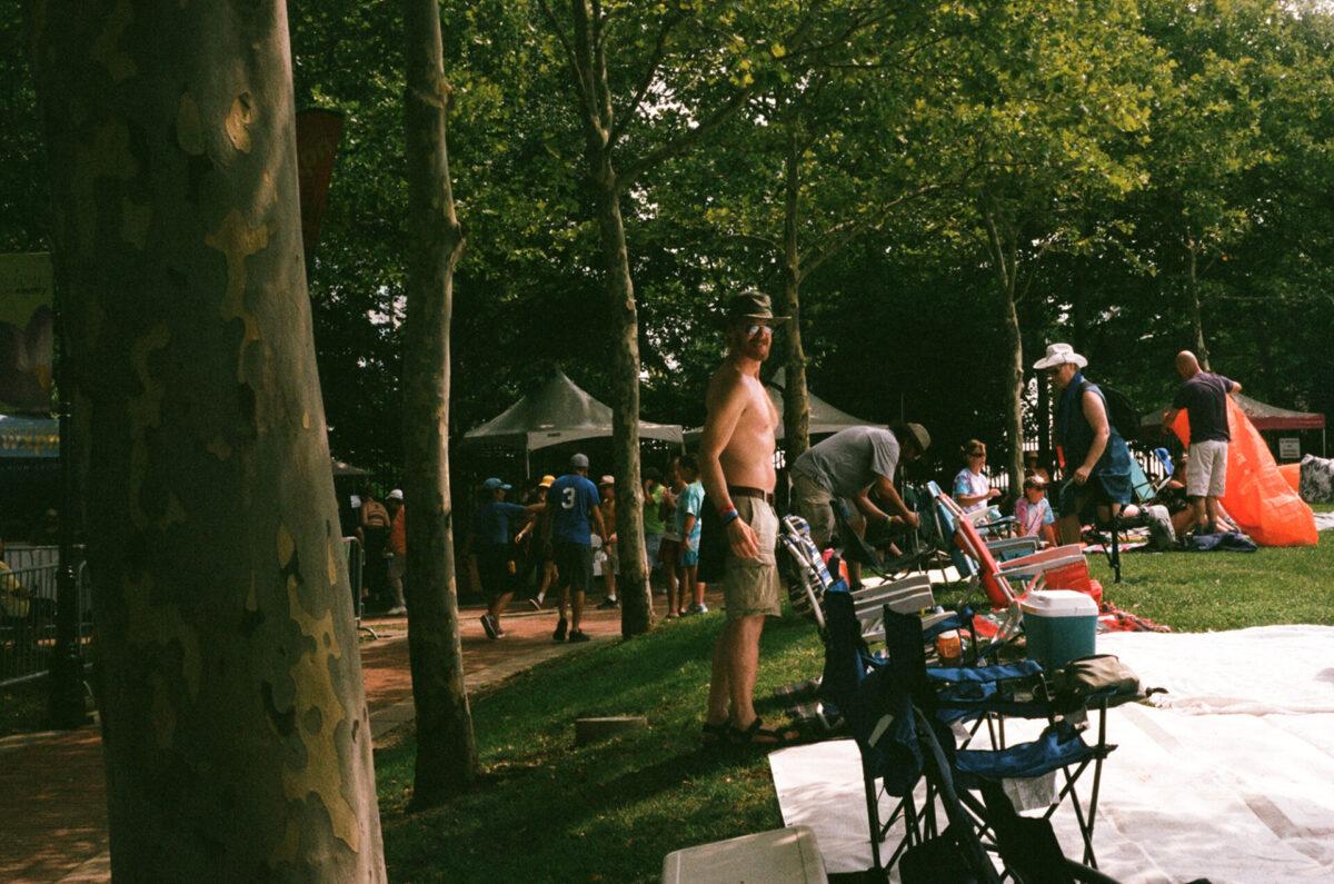 But there’s something to be said for surrendering much of that control to limitations and chance; taking photos as scenes unfold to you, to taking just one or two shots per scene (because you only have so much film), to refrain from getting caught up in fussy details and seeing what turns out. This year at the XPoNential Music Festival, I brought two cameras with me — a Ricoh SLR, an Argus rangefinder — and shot a roll of color film and a roll of black and white. Here’s what happened.