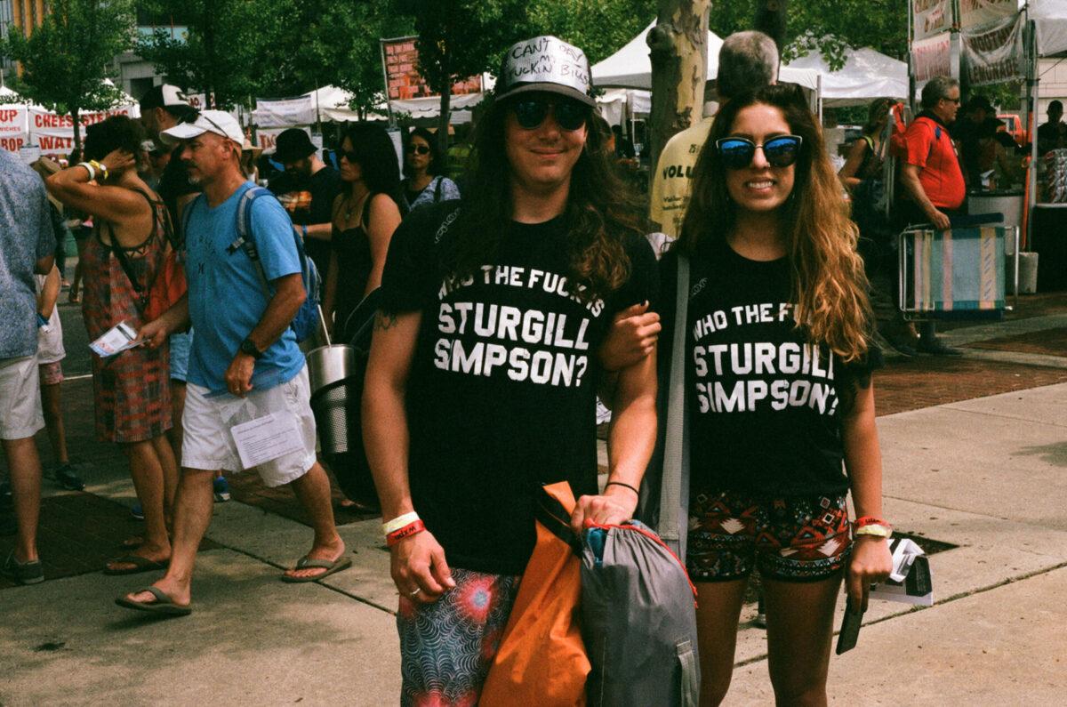 I spotted these Sturgill Simpson megafans wearing matching attire to Wiggins Park for day two of XPNFest. Bonus points if you can tell me (without Googling) what classic rock t-shirt this is an homage to.