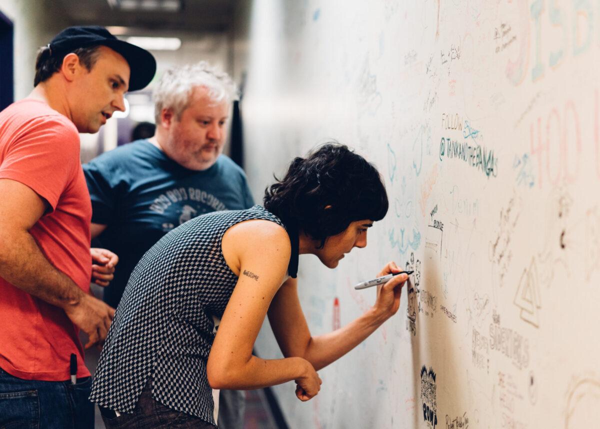 Joining us for this Indie Rock Hit Parade live session is a band whose witty and effervescent songs are sure to bring a smile to your face. Formed in 2012 by three veterans of Seattle’s DIY punk scene, wimps released their fifth album (and second for Kill Rock Stars), Garbage People. Co-fronted by guitarist Rachel Ratner and bassist Matt Nyce, with drummer Dave Ramm rounding out the power trio, wimps blend energetic punk with thoroughly relatable lyrics. Before their show at Boot and Saddle, wimps stopped by our studio to record a session that turned out to be more like a mini radio concert!
