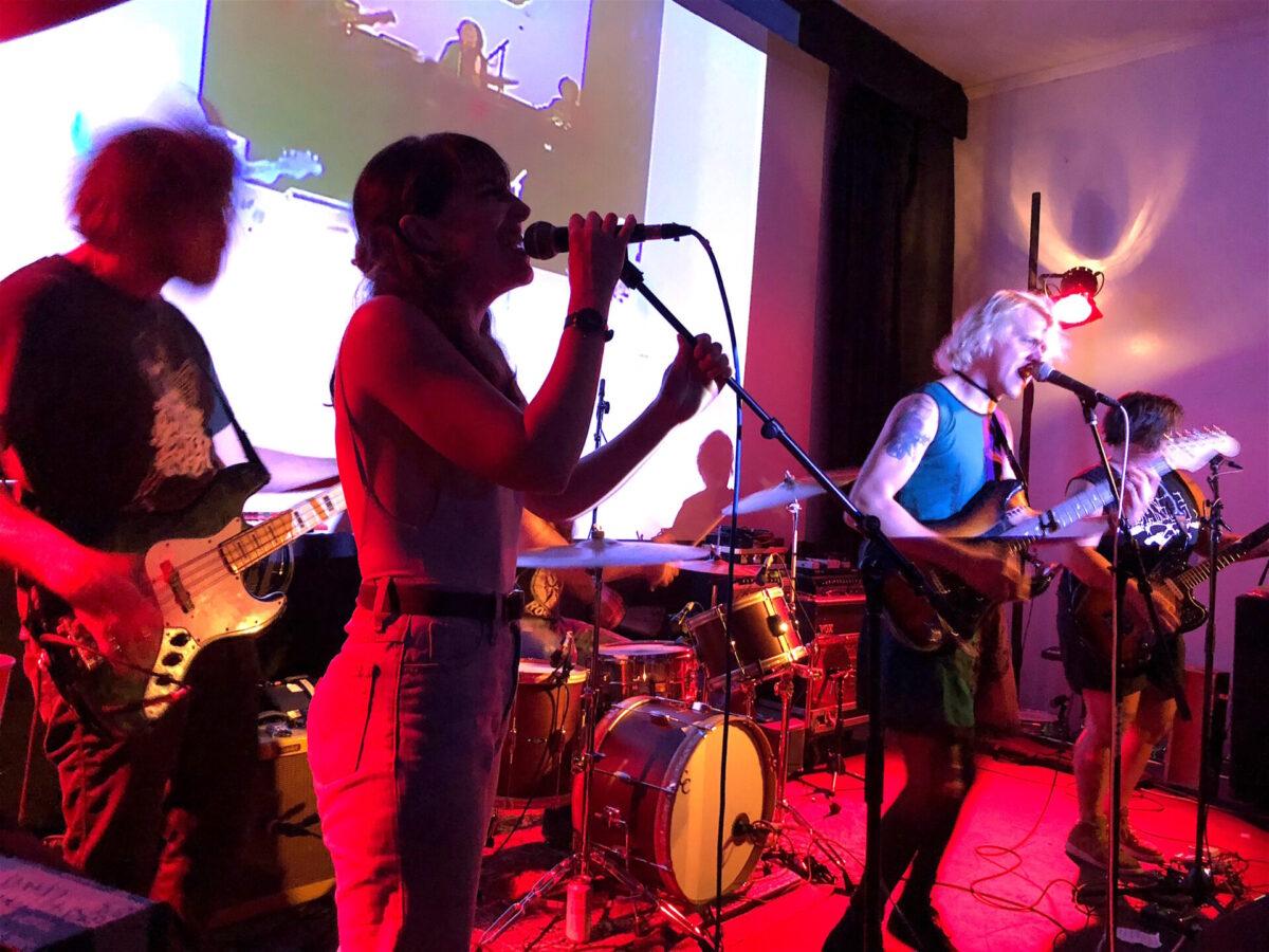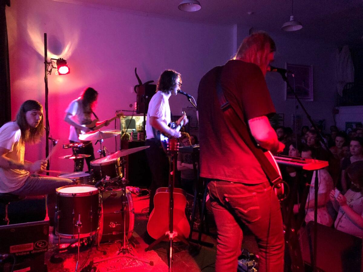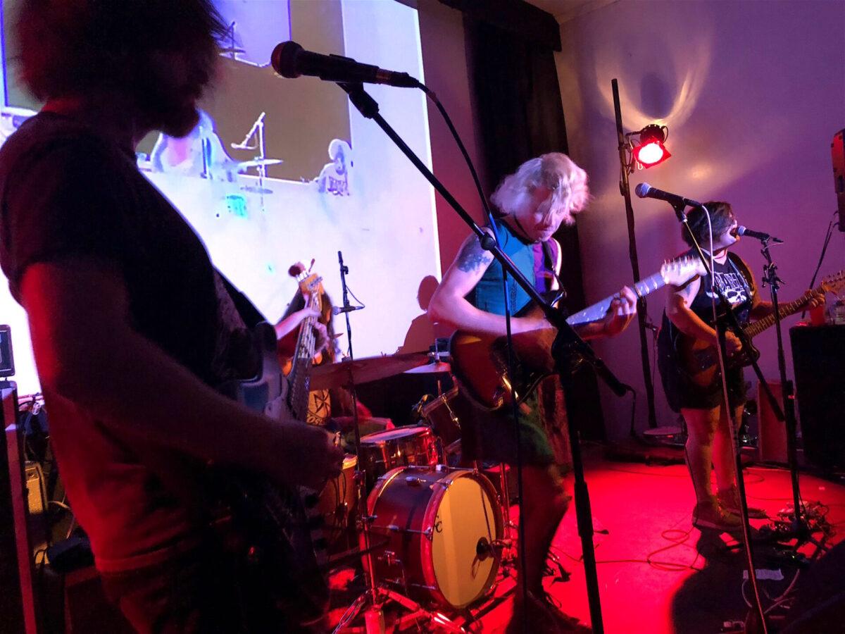 Thin Lips began their set with a few tracks from their new LP, Chosen Family, waking up the crowd from their state with bright tones, frontwoman Chrissy Tahsjian’s sharp voice, and an ecstatic drummer. Philly artist Curtis Cooper join Thin Lips for this tour, filling the band into a quartet and providing some effortlessly engaging guitar, reflective of their more blues-y work. The set also featured an incredibly subtle cameo from Hop Along frontwoman Frances Quinlan, who was featured on Chosen Family and the Weathervane version of “So Stoned” as well; she joined the band onstage for the rousing heartache anthem “South America.” Thin Lips has an enrapturing energy, creating punk that can capture the attention of any age, with deeply personal lyrics essential to good emo. Their live sets are impressively tight as well, either reflective of dedicated practice or simply excellent chemistry.