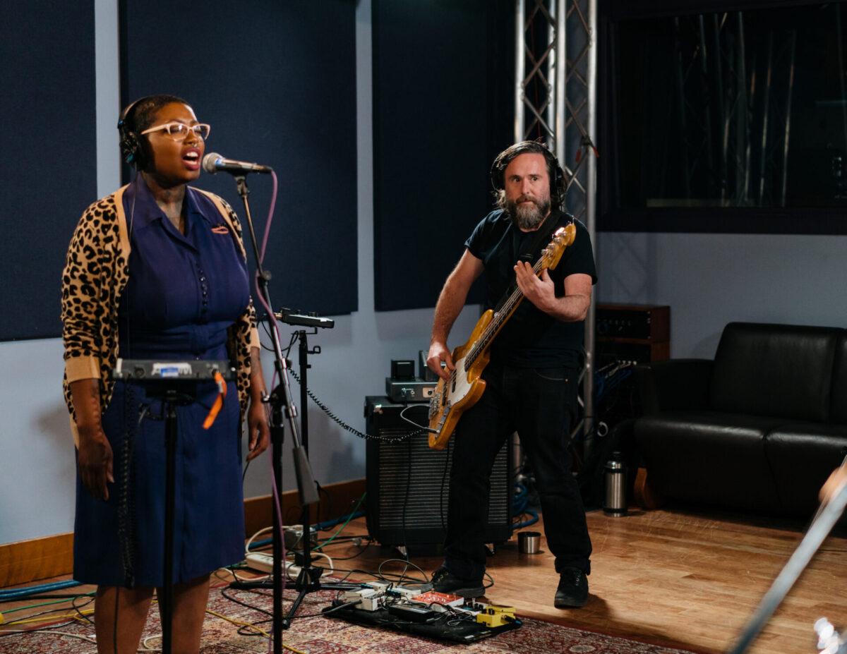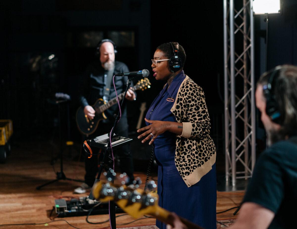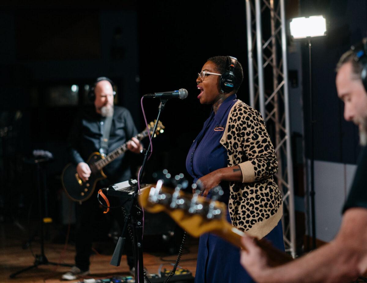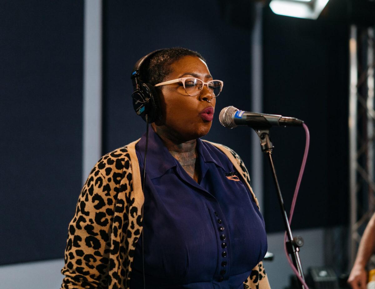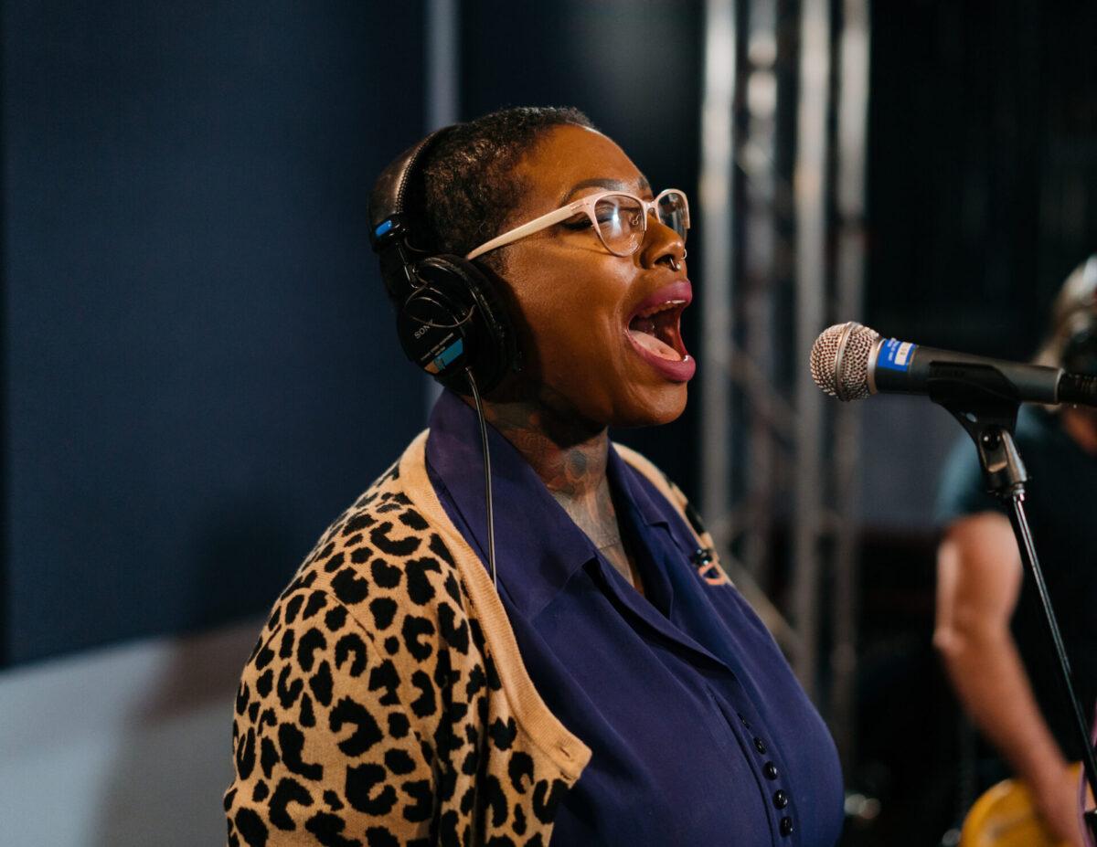 As you can see and hear from their performance in WXPN studios, every element of Sheena and Thee Nosebleeds is a force to be reckoned with. Kulp’s drumming is complex and intricate, but constantly in forward-motion (and shoutouts to him for being the first drummer to bring a gong into the studio, you can hear it in action on “Death’s Headqüarters”), while Lyman’s licks and leads are rapid fire and dazzling when appropriate, but sometimes they coax more intensity out of a less-is-more approach (his solos on “Honey and Hot Sauce” showcase both approaches). Powell’s voice, as we said, soars; it commands, it compels, and it does so with an remarkable dynamic range. And not to rest on his laurels, Cooper’s basslines take the lead more often then most punk bassists, leaping beyond root-note patterns into galvanizing runs.