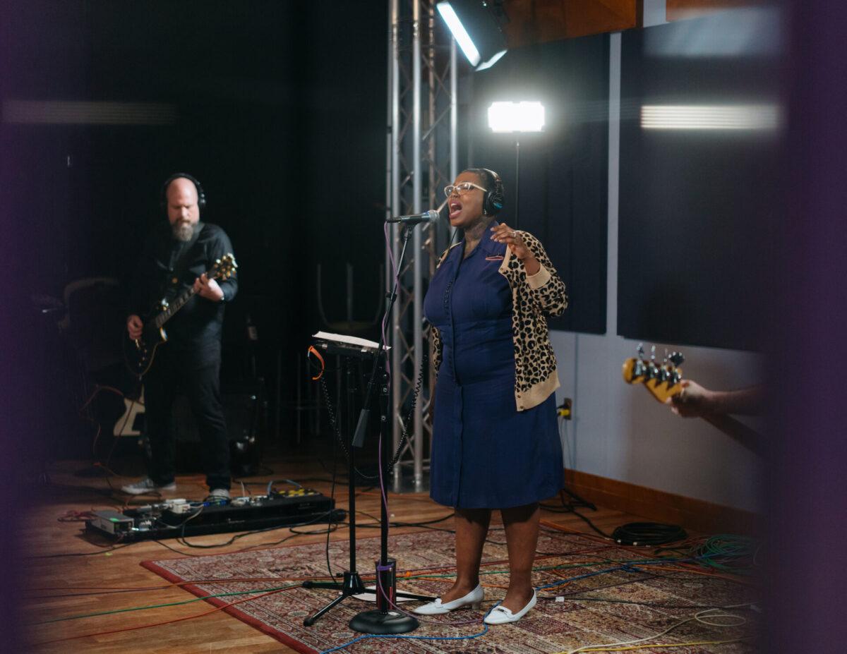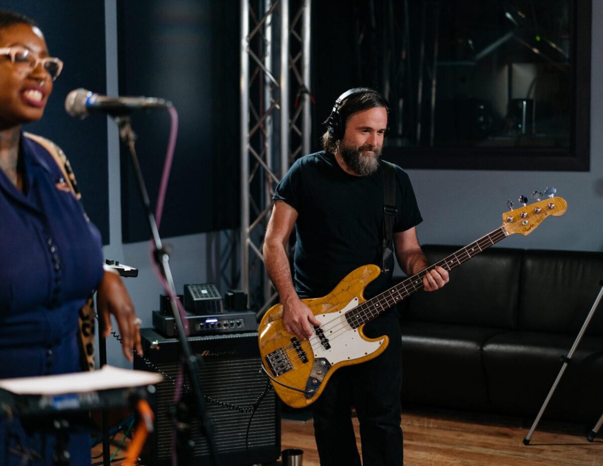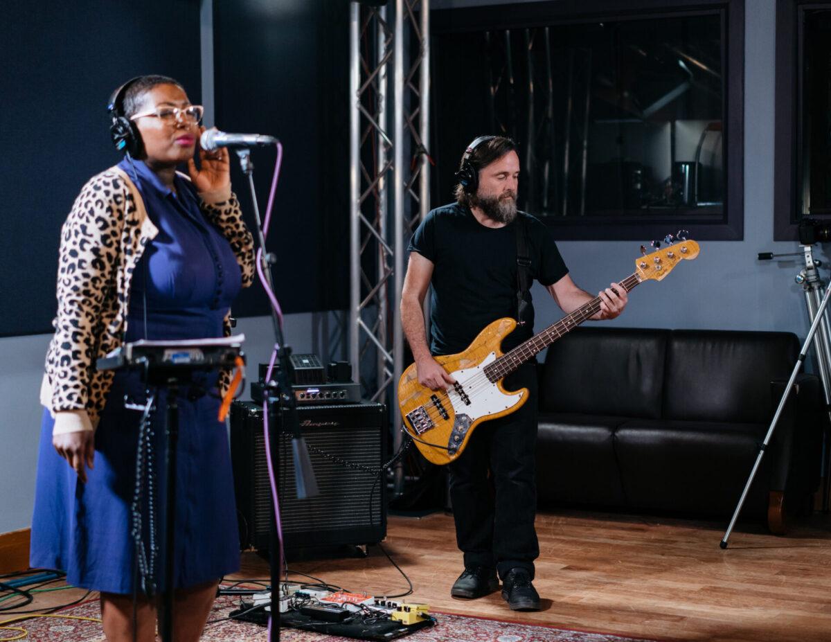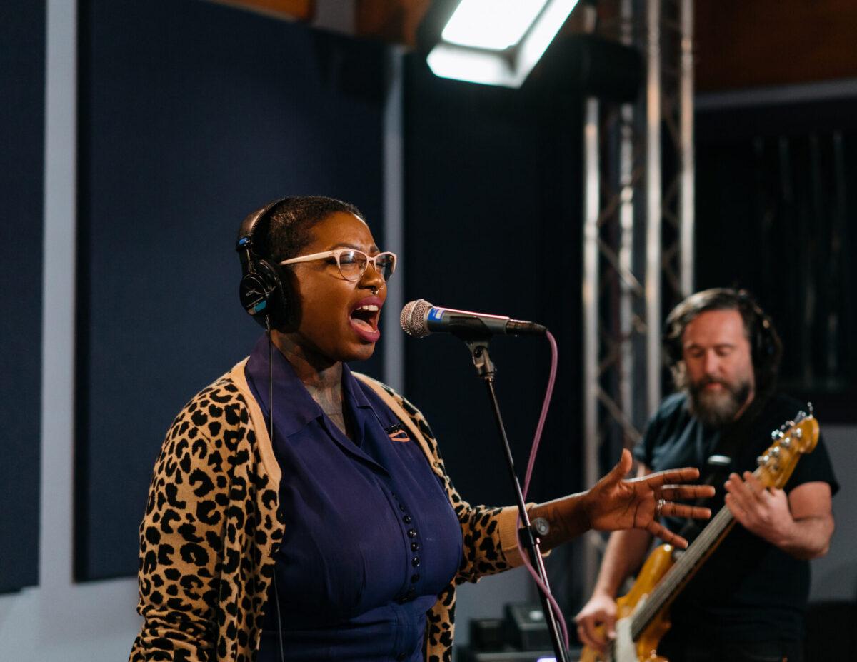 As you can see and hear from their performance in WXPN studios, every element of Sheena and Thee Nosebleeds is a force to be reckoned with. Kulp’s drumming is complex and intricate, but constantly in forward-motion (and shoutouts to him for being the first drummer to bring a gong into the studio, you can hear it in action on “Death’s Headqüarters”), while Lyman’s licks and leads are rapid fire and dazzling when appropriate, but sometimes they coax more intensity out of a less-is-more approach (his solos on “Honey and Hot Sauce” showcase both approaches). Powell’s voice, as we said, soars; it commands, it compels, and it does so with an remarkable dynamic range. And not to rest on his laurels, Cooper’s basslines take the lead more often then most punk bassists, leaping beyond root-note patterns into galvanizing runs.