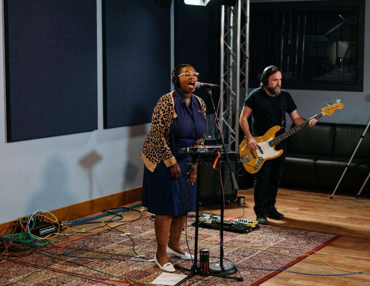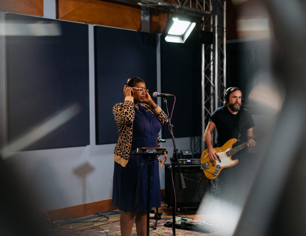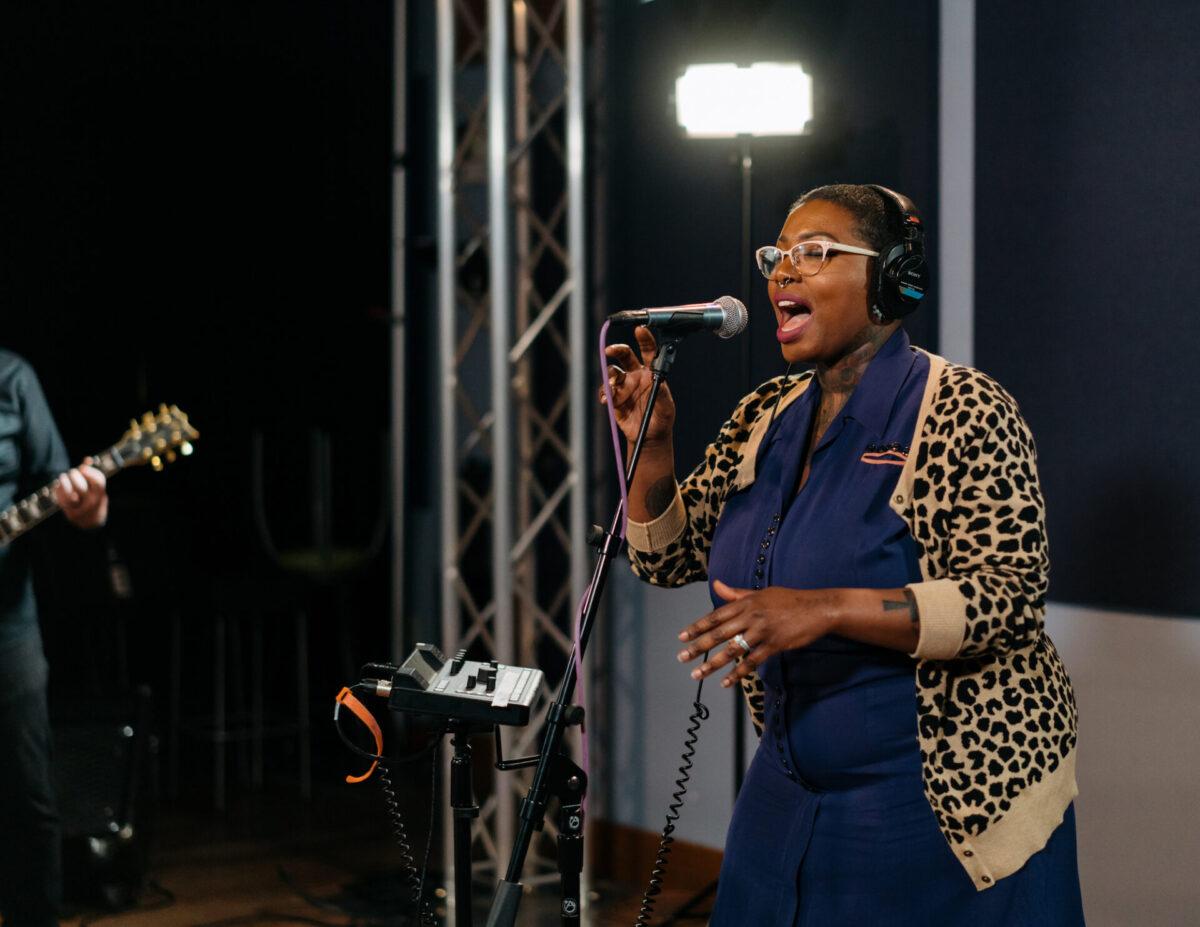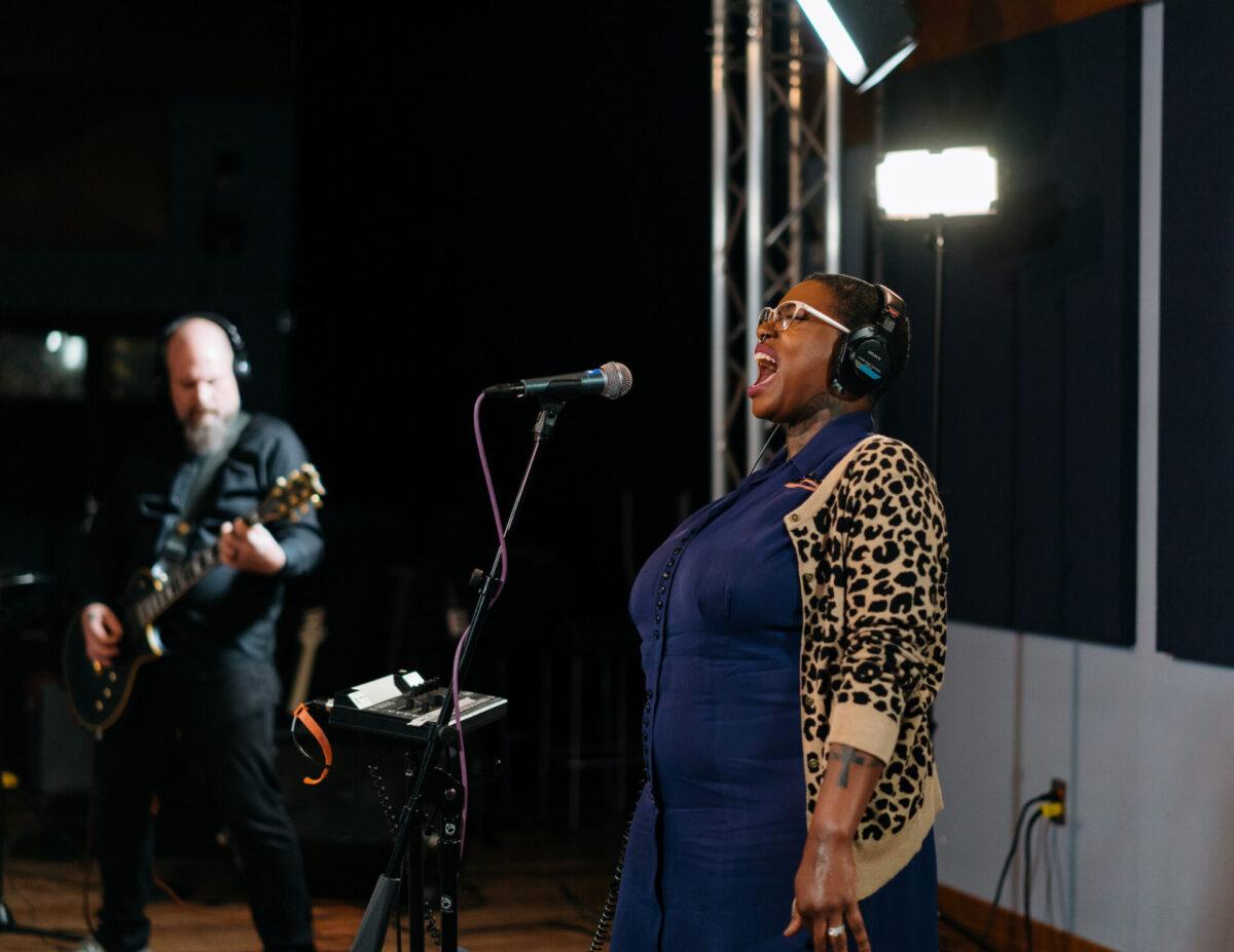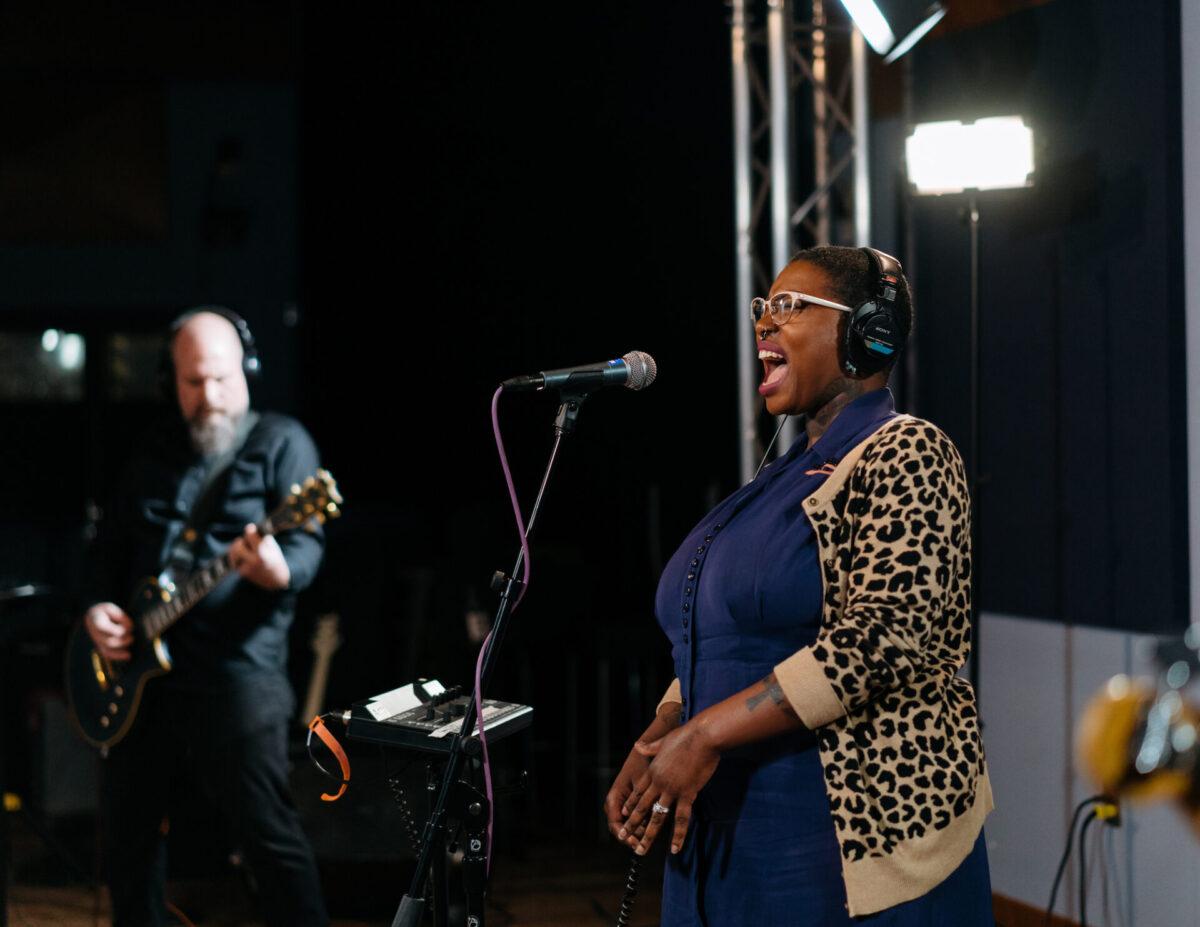 As you can see and hear from their performance in WXPN studios, every element of Sheena and Thee Nosebleeds is a force to be reckoned with. Kulp’s drumming is complex and intricate, but constantly in forward-motion (and shoutouts to him for being the first drummer to bring a gong into the studio, you can hear it in action on “Death’s Headqüarters”), while Lyman’s licks and leads are rapid fire and dazzling when appropriate, but sometimes they coax more intensity out of a less-is-more approach (his solos on “Honey and Hot Sauce” showcase both approaches). Powell’s voice, as we said, soars; it commands, it compels, and it does so with an remarkable dynamic range. And not to rest on his laurels, Cooper’s basslines take the lead more often then most punk bassists, leaping beyond root-note patterns into galvanizing runs.