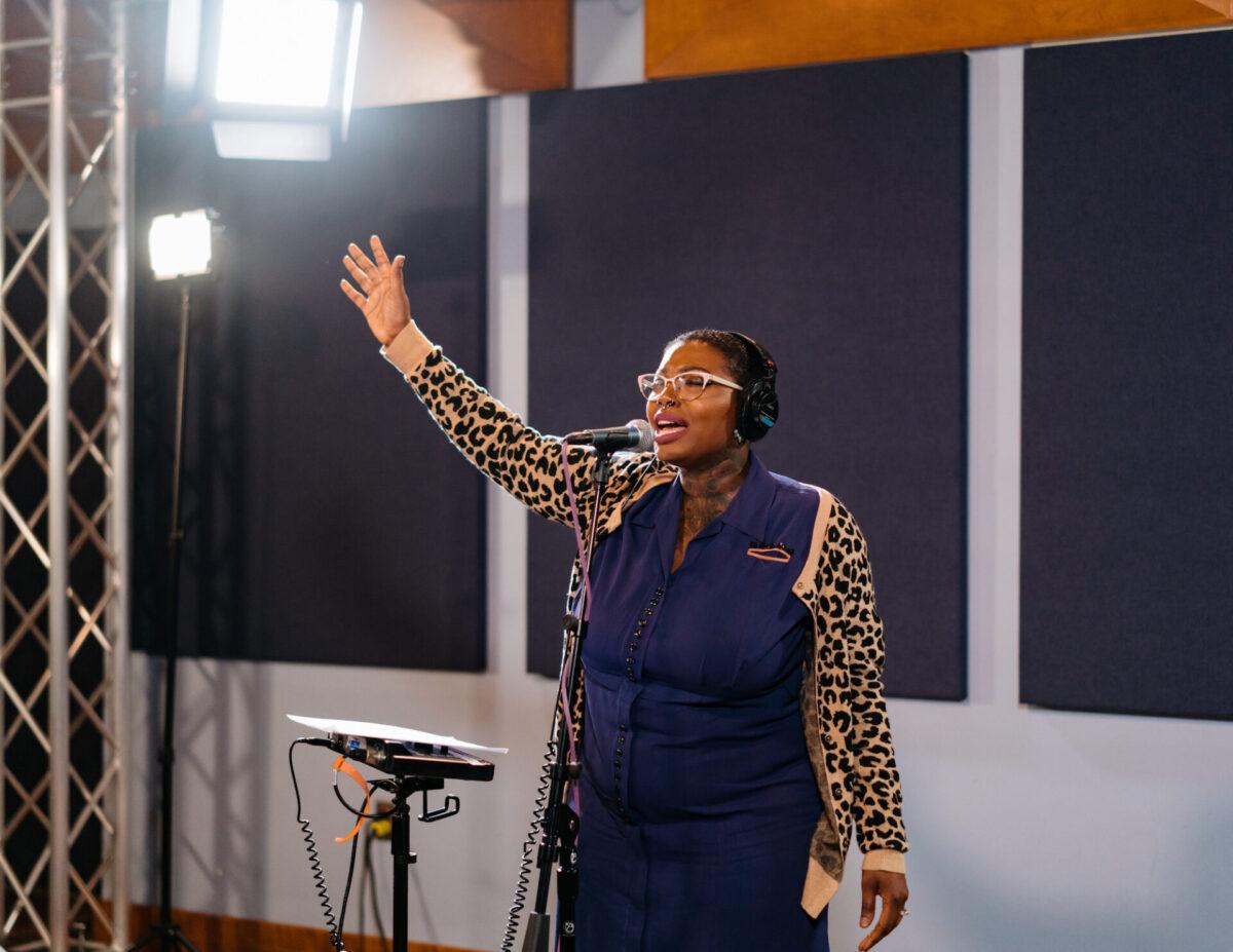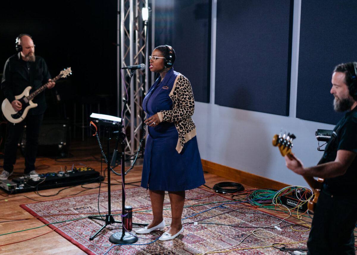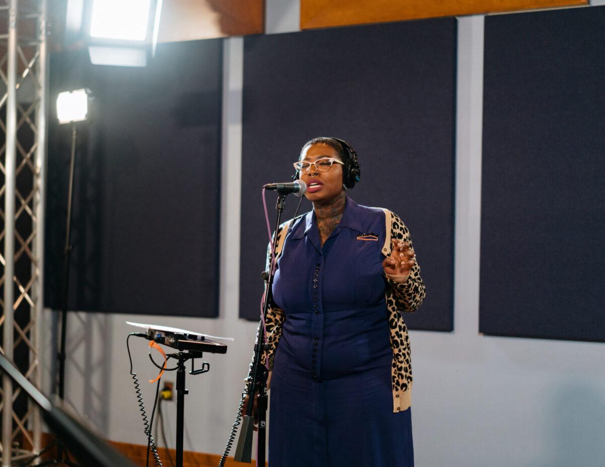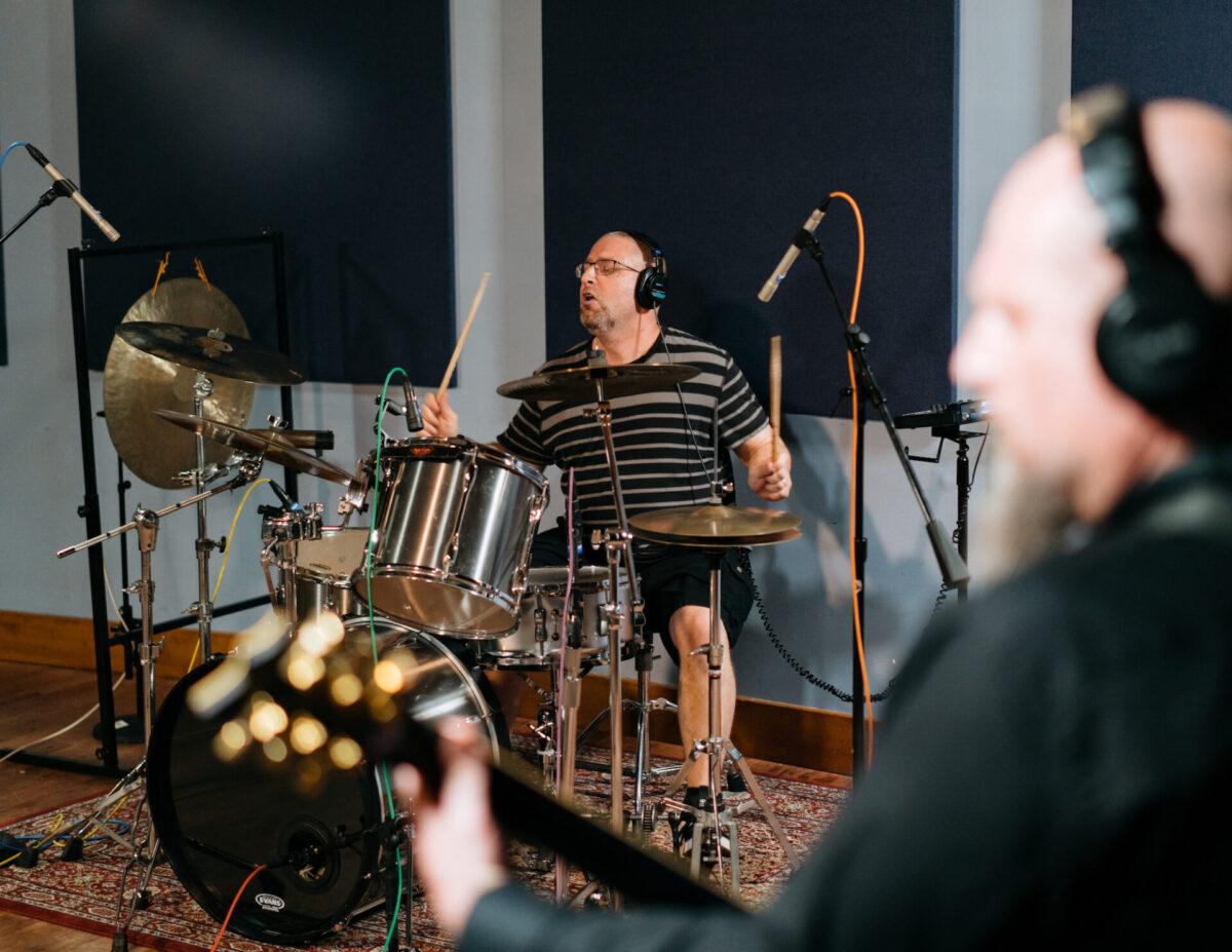As you can see and hear from their performance in WXPN studios, every element of Sheena and Thee Nosebleeds is a force to be reckoned with. Kulp’s drumming is complex and intricate, but constantly in forward-motion (and shoutouts to him for being the first drummer to bring a gong into the studio, you can hear it in action on “Death’s Headqüarters”), while Lyman’s licks and leads are rapid fire and dazzling when appropriate, but sometimes they coax more intensity out of a less-is-more approach (his solos on “Honey and Hot Sauce” showcase both approaches). Powell’s voice, as we said, soars; it commands, it compels, and it does so with an remarkable dynamic range. And not to rest on his laurels, Cooper’s basslines take the lead more often then most punk bassists, leaping beyond root-note patterns into galvanizing runs.