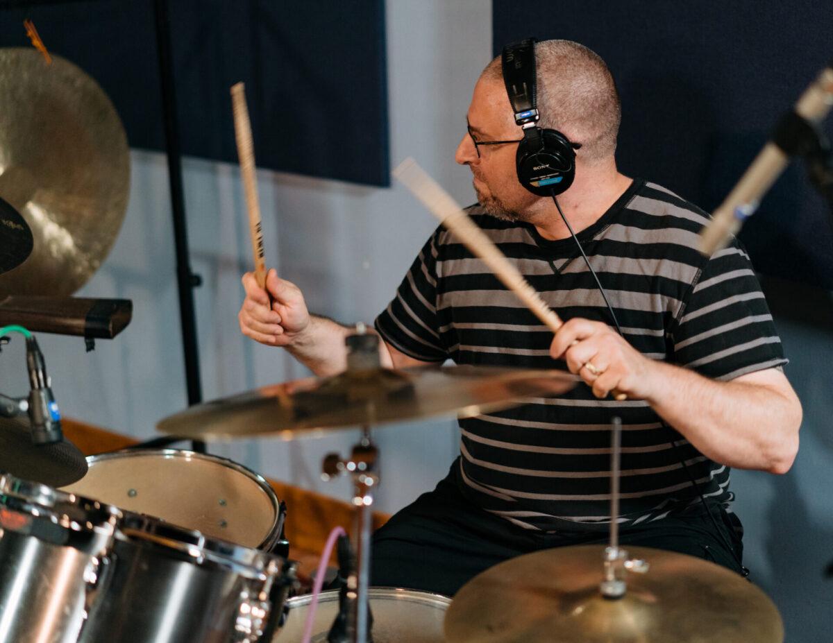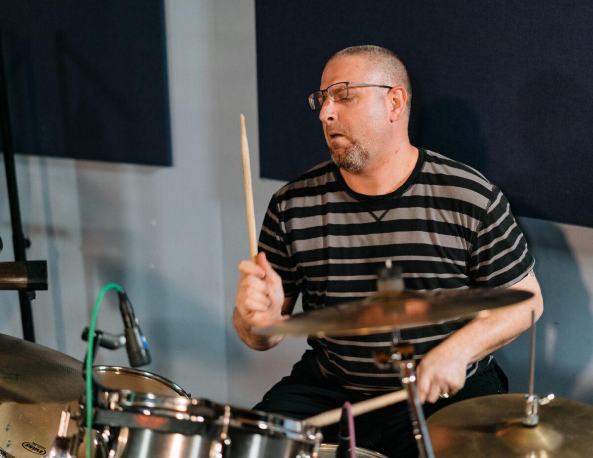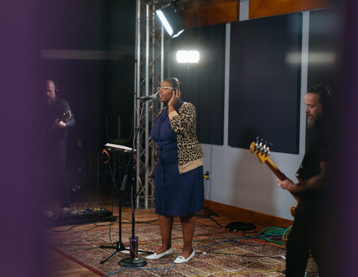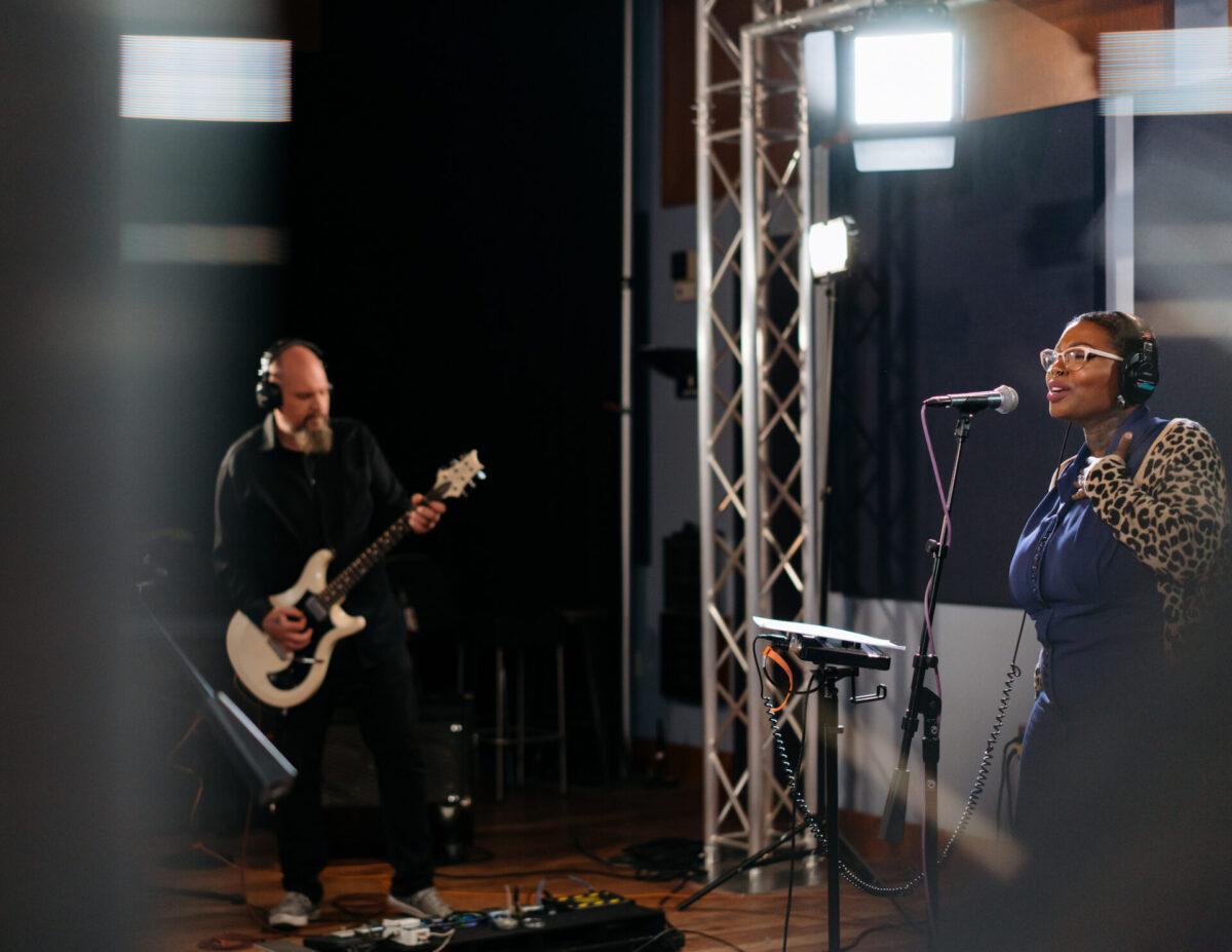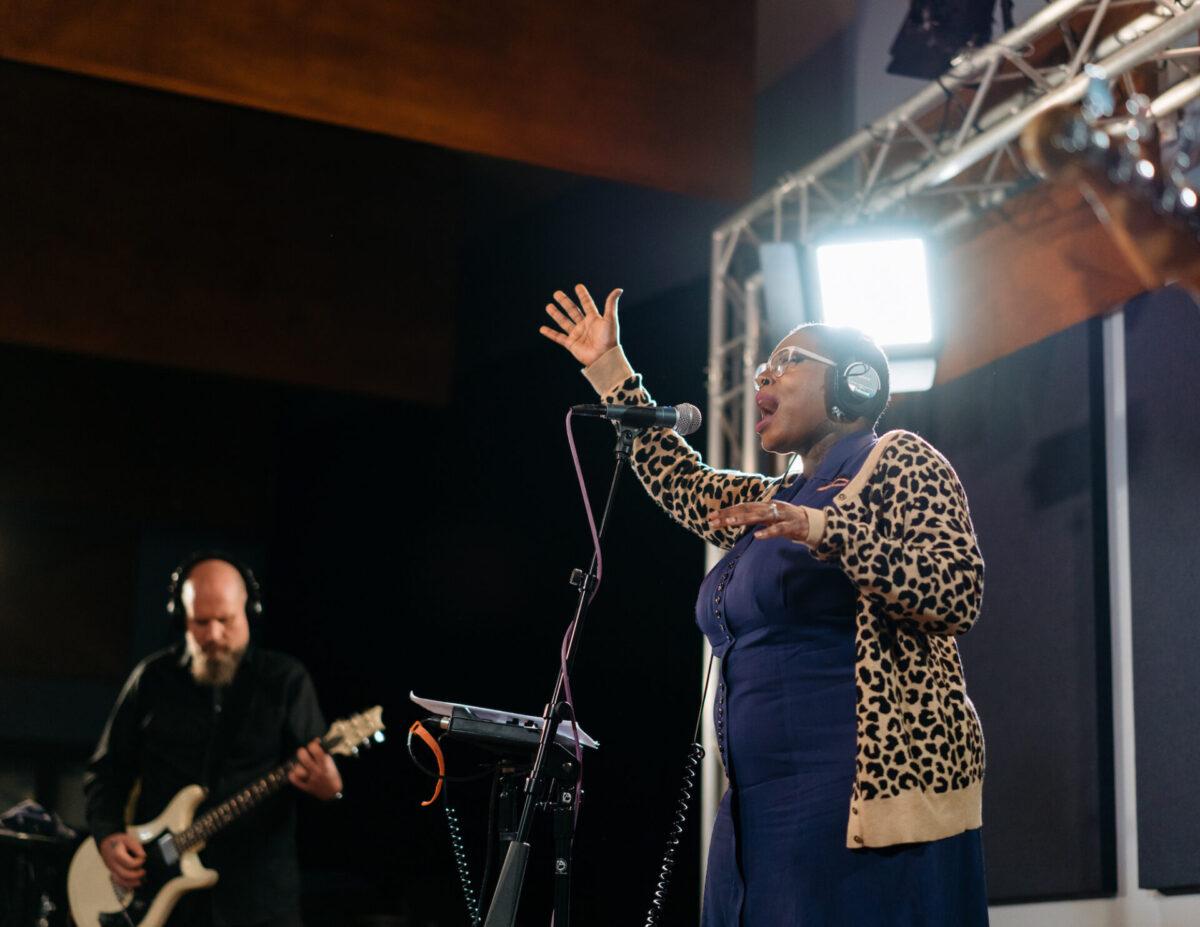 As you can see and hear from their performance in WXPN studios, every element of Sheena and Thee Nosebleeds is a force to be reckoned with. Kulp’s drumming is complex and intricate, but constantly in forward-motion (and shoutouts to him for being the first drummer to bring a gong into the studio, you can hear it in action on “Death’s Headqüarters”), while Lyman’s licks and leads are rapid fire and dazzling when appropriate, but sometimes they coax more intensity out of a less-is-more approach (his solos on “Honey and Hot Sauce” showcase both approaches). Powell’s voice, as we said, soars; it commands, it compels, and it does so with an remarkable dynamic range. And not to rest on his laurels, Cooper’s basslines take the lead more often then most punk bassists, leaping beyond root-note patterns into galvanizing runs.