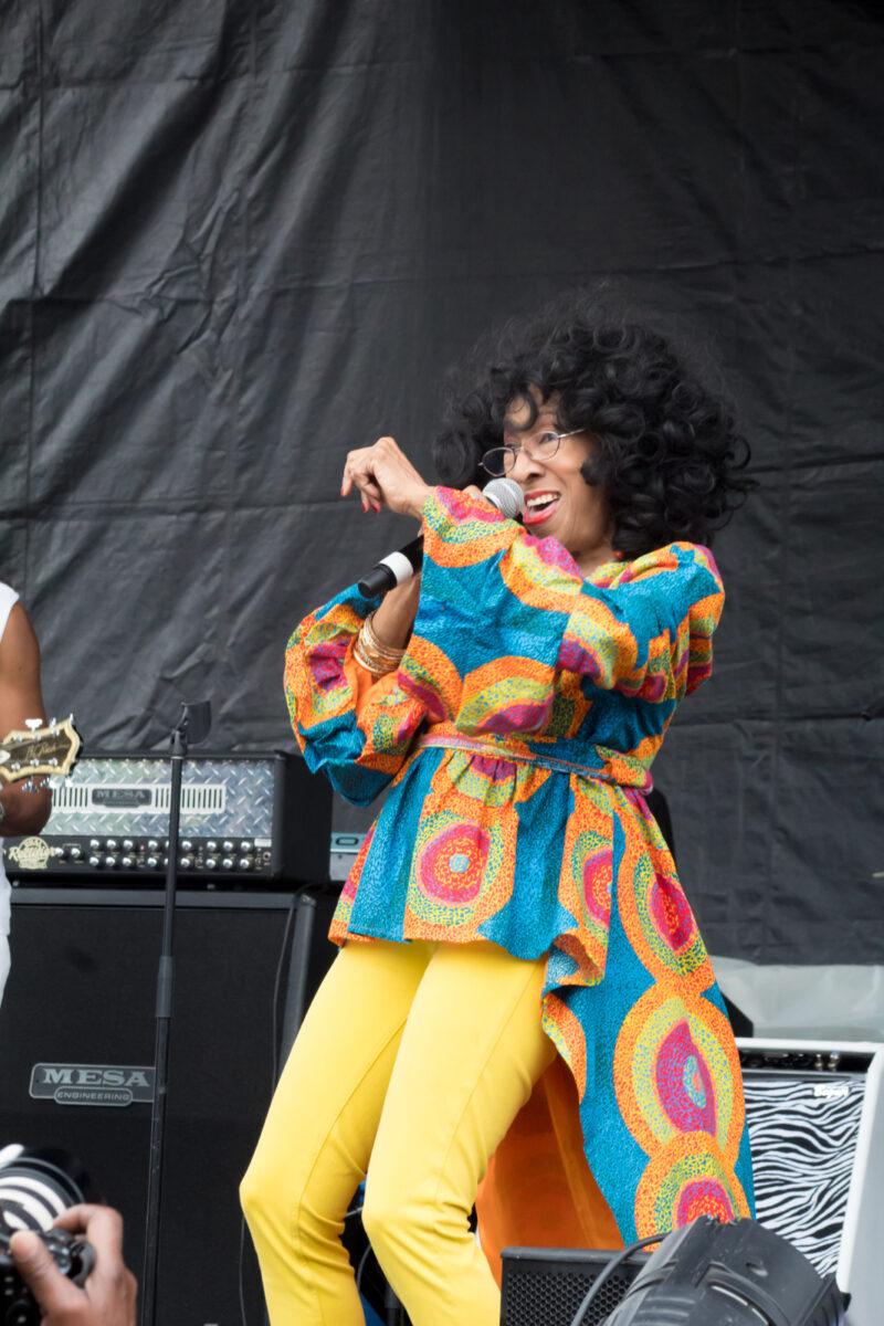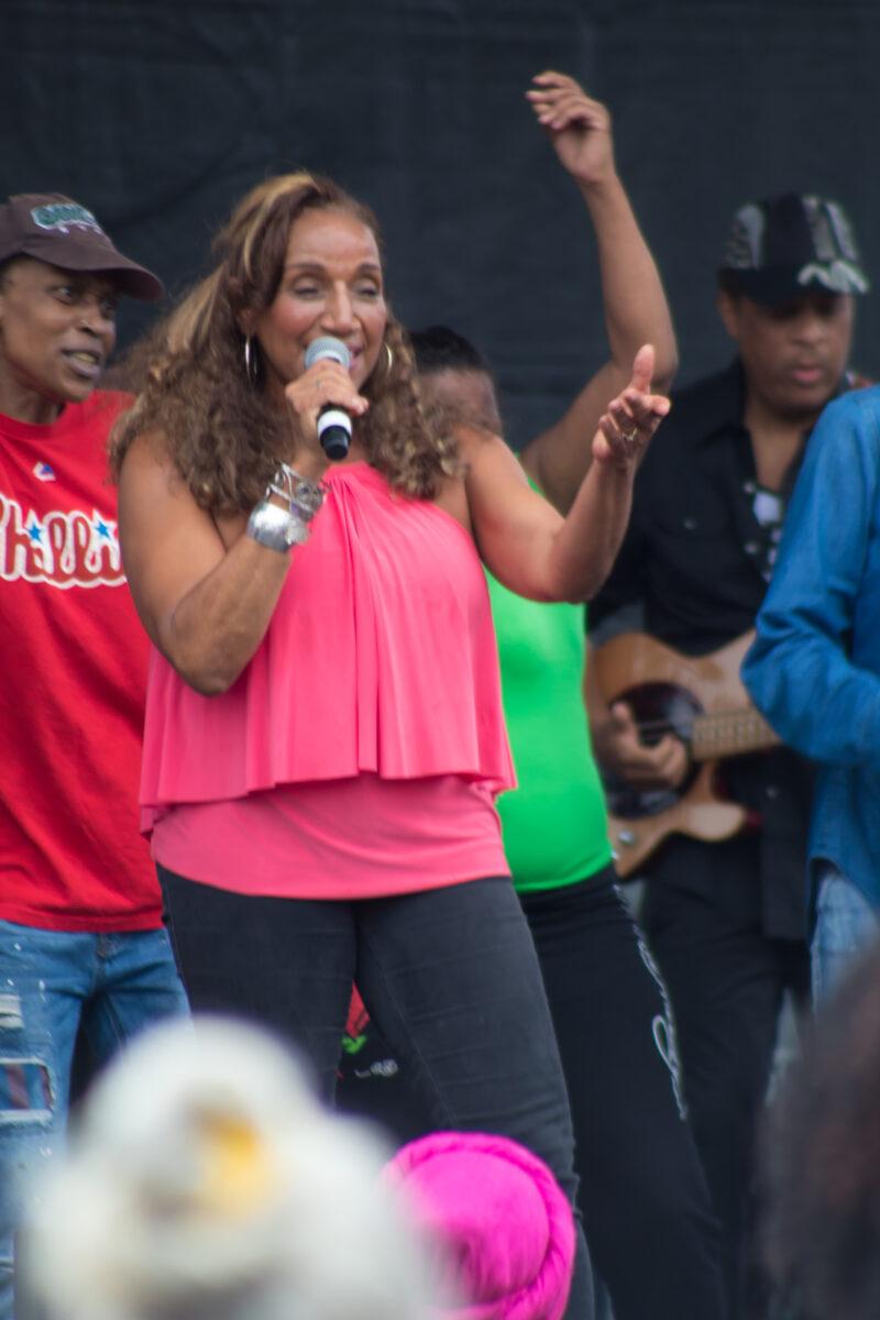 Following the lone Sledge sister was Jean Carne. Draped in an elaborate asymmetrical African-print shirt, the Philadelphia International artist performed hit songs like “Don’t Let it Go to Your Head” and “Closer than Close”.