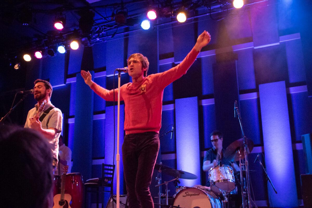 The members of the Secret American band appeared to be having as great a time as the audience as they powered through their quick seven-song set, sometimes with intensely choreographed moves and sometimes with improvised dancing and laughter, all while filling each song with the jangly instrumentals that give them their retro, laid-back feel. The final product of Secret American’s performative style fulfills the vision of vocalist Krzywicki, who has clearly put a lot of thought and effort into making sure his live show is never lacking in entertainment value.