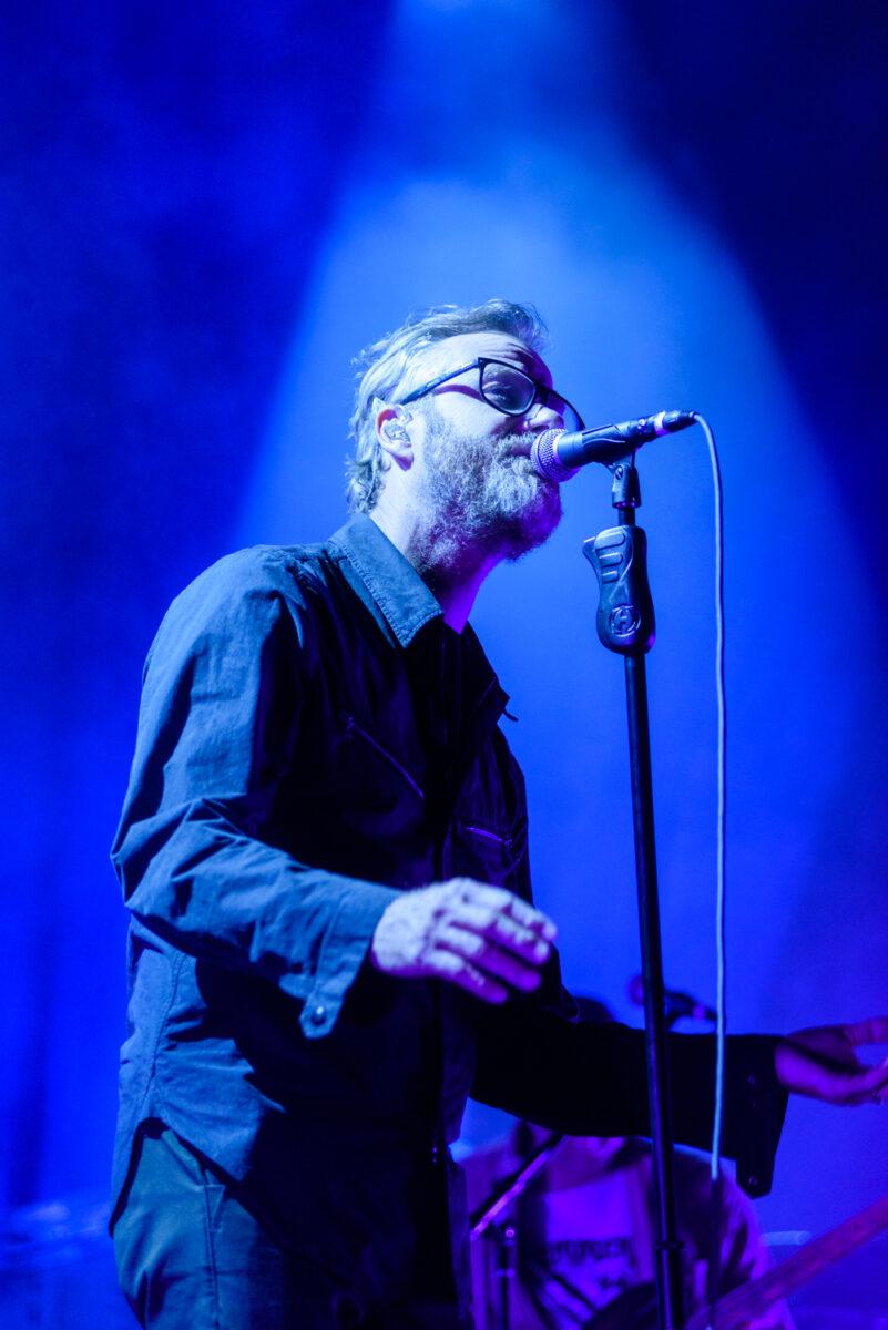 After a half-hour countdown of Sleep Well Beast iconography on the projector, The National took the stage to play the record’s opening track, “Nobody Else Will Be There.” Their set opened with a four-song punch from the Grammy-winning Beast, which completely holds up live a year after its release. The third of these was “Walk It Back,” which negatively samples a nationalistic Karl Rove interview from 2007. Politics seemed to loom over the whole evening, with Berninger dedicating “Bloodbuzz Ohio” to a Democrat running for senate in his home district against a 30-year Republican incumbent. When someone in the audience seemed to yell, “stick to the music,” Berninger retorted, “Do you know what band you came to see, motherf*cker?”