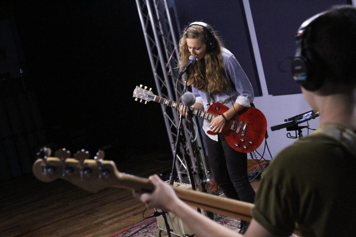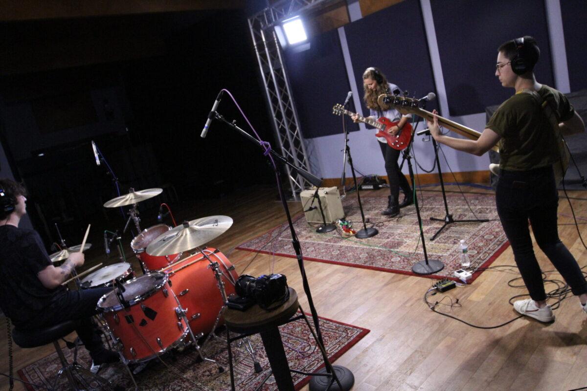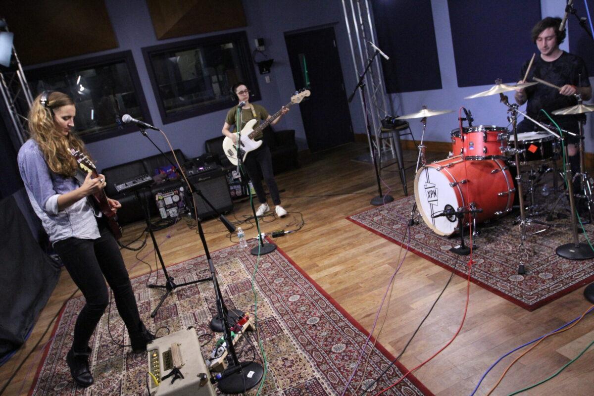 Currently consisting of Hannah Pugh on bass — she also plays in the super trippy trio Witch Bomb — as well as Adam Figurelle on drums — he’s her Mattress Food bandmate, as well — Wallace released its debut self-titled record late last month. Recorded with Jon Sambrick at Lancaster’s Thornwall Studios, it adds production polish to to the band’s blistering riffs and raw rock energy. Gerdy’s voice is gruff and gnarly — about right for a singer whose merch is designed to look like the Marlboro logo — and the energy is paced up tremendously, so moments of the set recall 90s punk like Green Day, particularly “Keeping Composure,” the meditation on addiction that starts off their performance at WXPN studios.