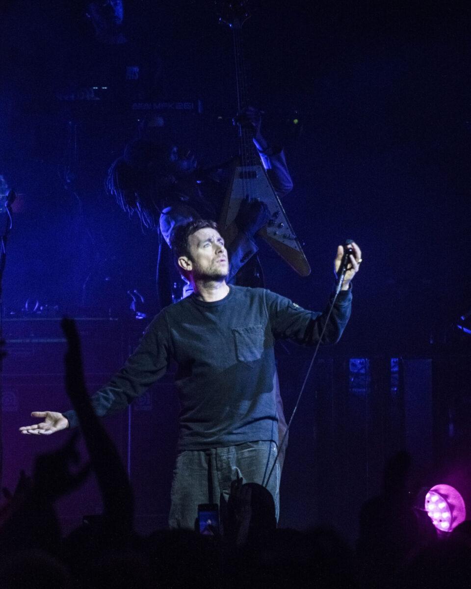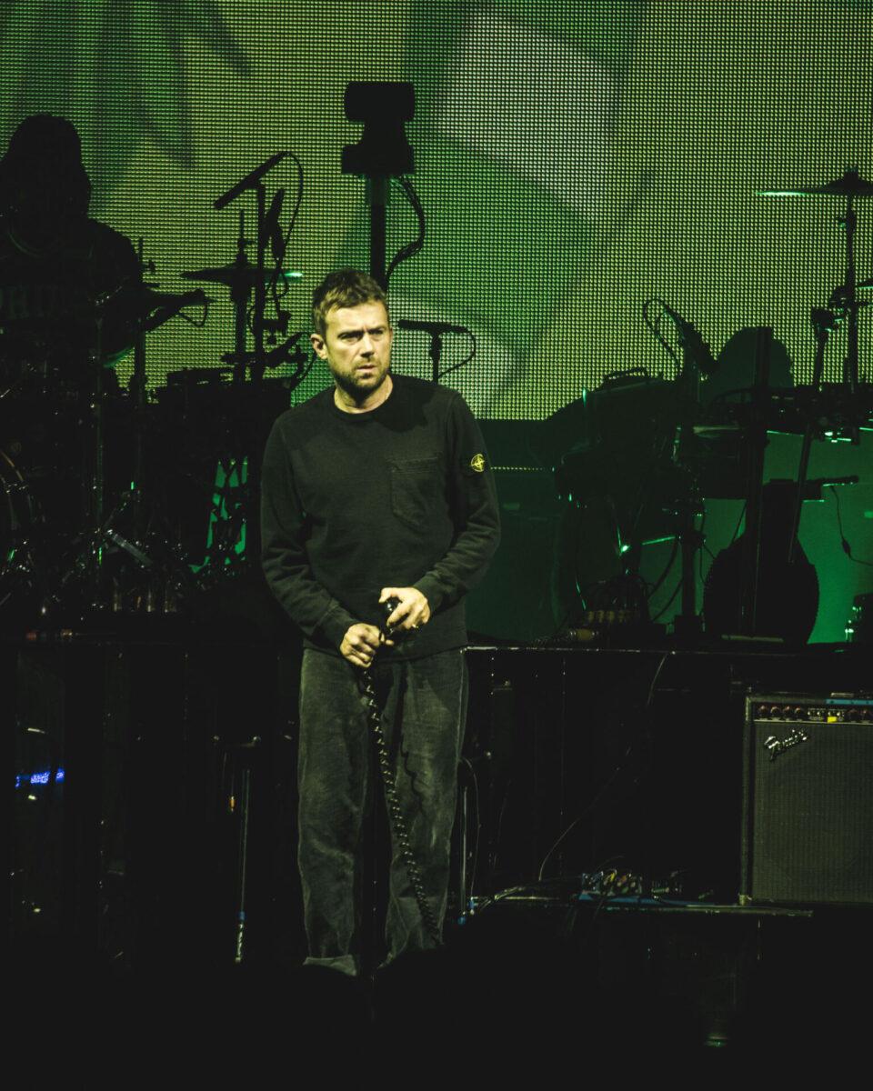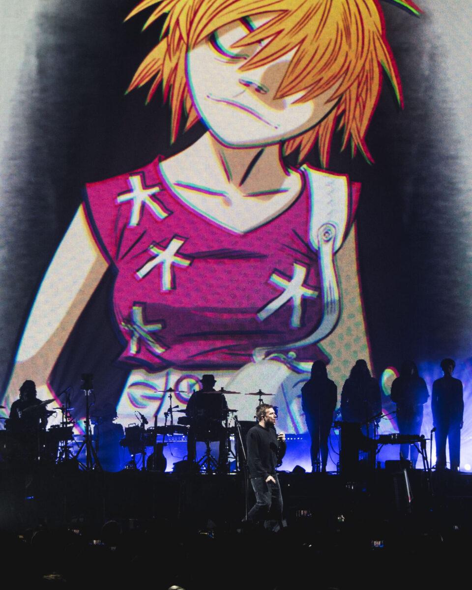 It has been fascinating to witness the evolution of Damon Albarn’s iconic “virtual band” Gorillaz over the better part of two decades, musically, lyrically, conceptually. What began as a commentary on the lack of substance on MTV—I can only imagine what Albarn thinks now—has expanded to explore issues personal, political, and environmental, using both the conceit of a cartoon musical act and the shape-shifting textures of hip-hop and electronic music to lend such heady subjects a deceptively danceable accessibility. This evolution also informs the project’s live translation, which on paper could conceivably present a challenge. And this is all before considering recent release The Now Now’s relative simplicity compared to its predecessors’ complexity and ambition. On Albarn’s visit to the Wells Fargo Center earlier this week, he did his best to not only reconcile the newer Now material with the rest of his repertoire, but his animated avatars with the living breathing people behind them.