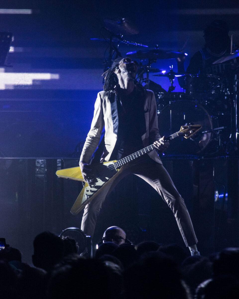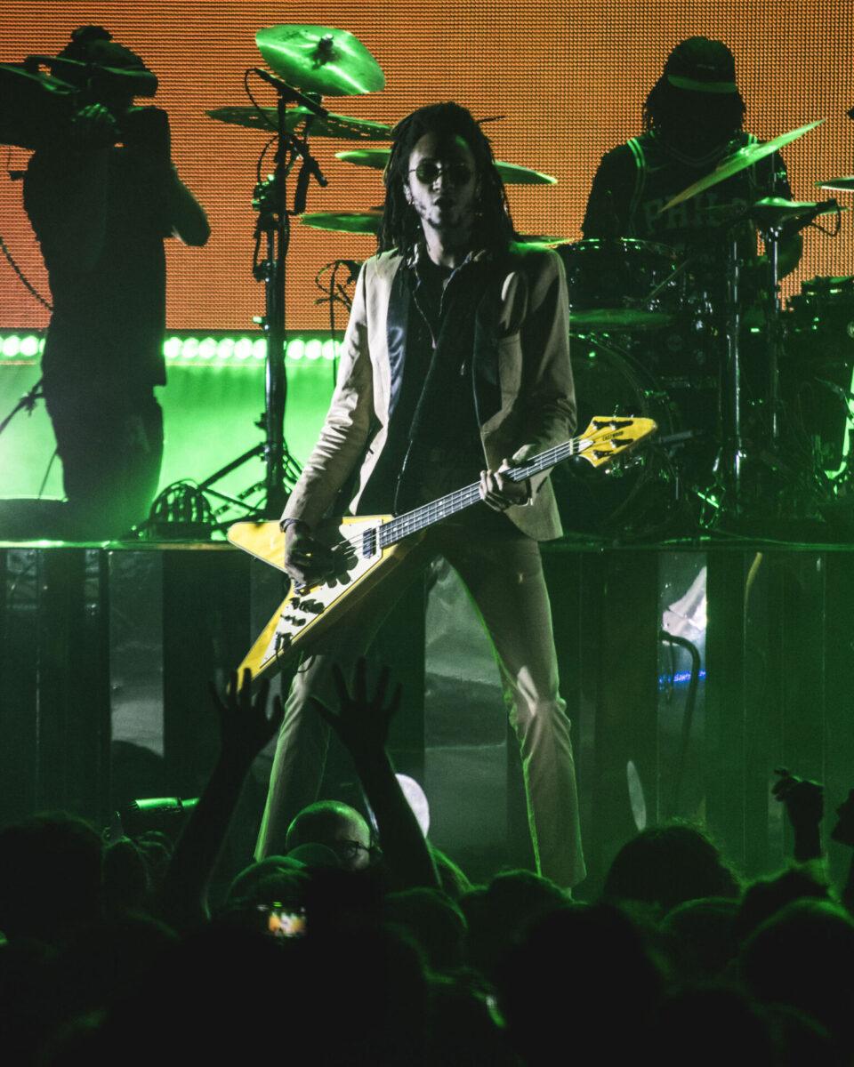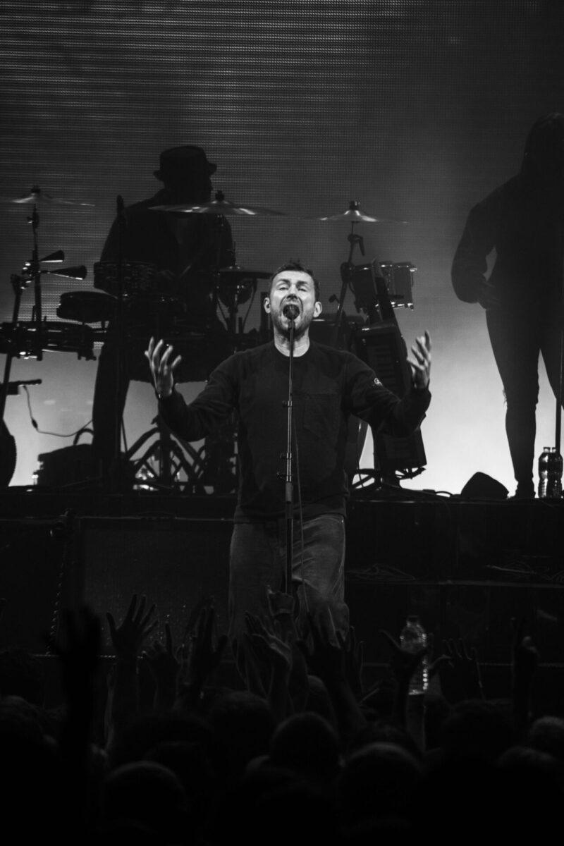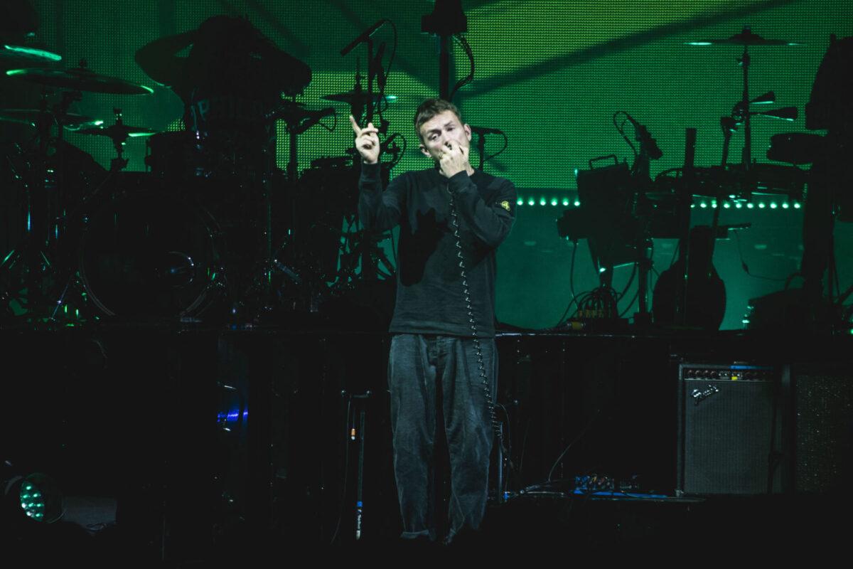 It has been fascinating to witness the evolution of Damon Albarn’s iconic “virtual band” Gorillaz over the better part of two decades, musically, lyrically, conceptually. What began as a commentary on the lack of substance on MTV—I can only imagine what Albarn thinks now—has expanded to explore issues personal, political, and environmental, using both the conceit of a cartoon musical act and the shape-shifting textures of hip-hop and electronic music to lend such heady subjects a deceptively danceable accessibility. This evolution also informs the project’s live translation, which on paper could conceivably present a challenge. And this is all before considering recent release The Now Now’s relative simplicity compared to its predecessors’ complexity and ambition. On Albarn’s visit to the Wells Fargo Center earlier this week, he did his best to not only reconcile the newer Now material with the rest of his repertoire, but his animated avatars with the living breathing people behind them.