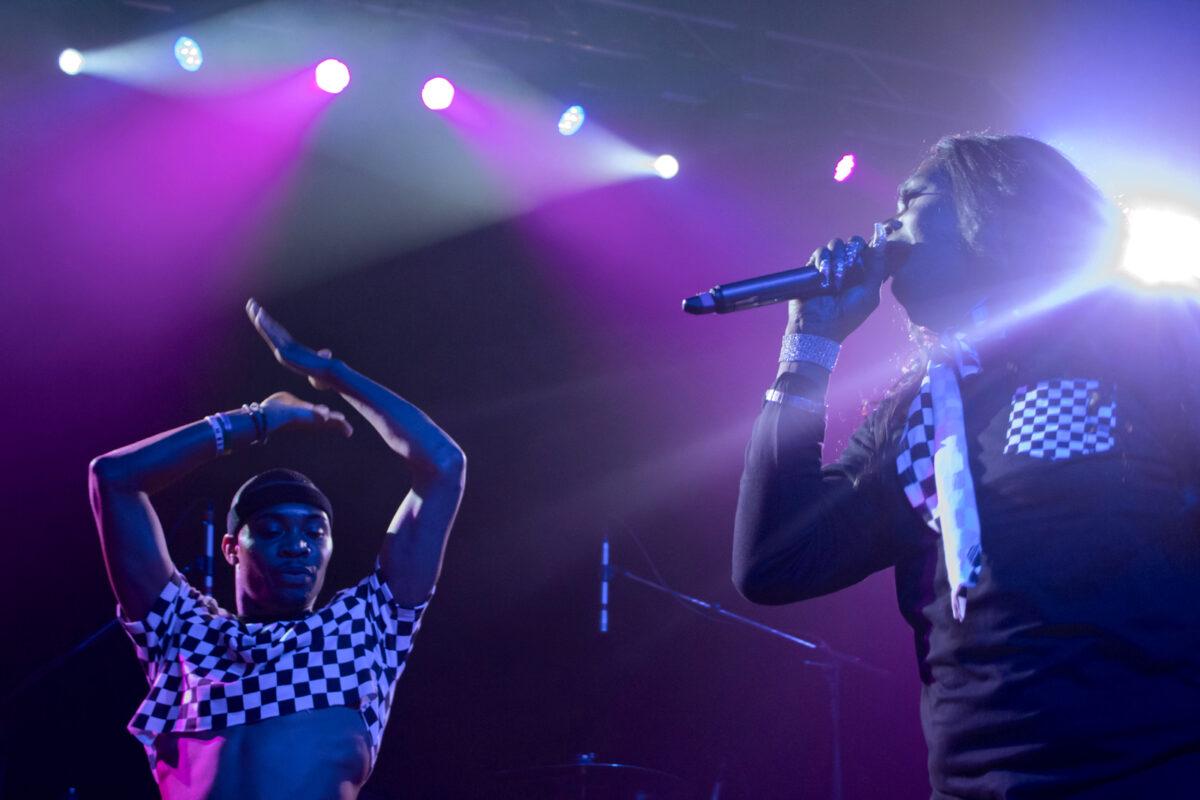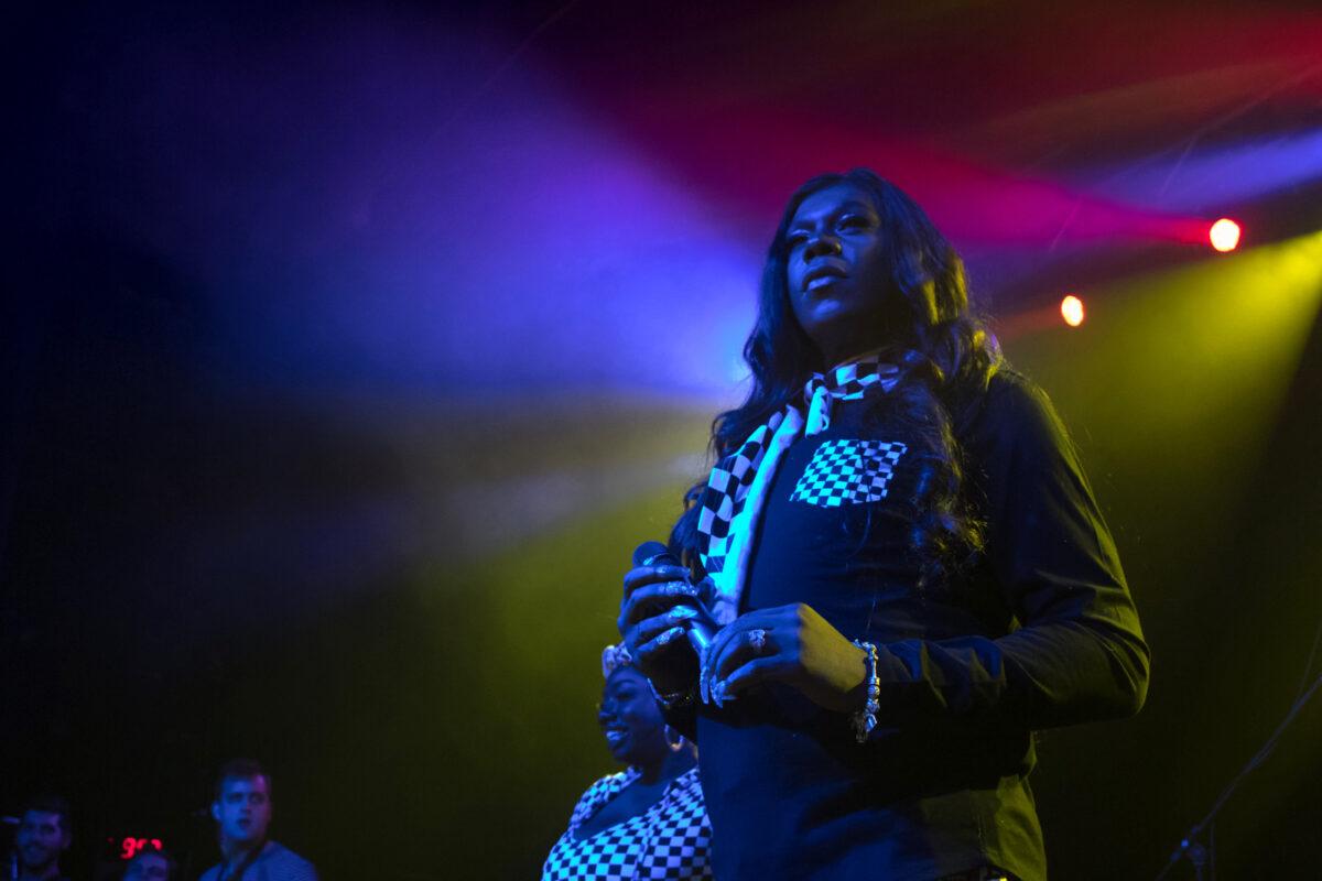 Big Freedia and her dancers maintained a high level of energy while performing songs like “Karaoke” and “Gin In My System” amid twerking breaks (of course), shoulder bounces, and mid-air splits. At one point in the evening, Big Freedia invited ten members of the audience on stage for a group twerk session. At the end of Big Freedia’s performance, DJ Juane Jordan played Whitney Houston’s “I Will Always Love You,” where the entire venue sang every word, sometimes unsuccessfully hitting all of the high notes. This was followed by a bounce version of R & B singer K Michelle’s now-viral video of her screaming at a young woman to “get the fuck off of [her] porch.”