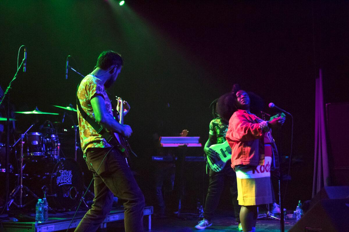 FInally it was time for the main act – Tank and the Bangas. The band, as they usually do, sauntered to the stage without much fuss or ado. The background singers, on the other hand, had an outstanding presence thanks to the giant panda heads that they were wearing. Moments later, founding member and lead singer Tarriona “Tank” Ball graced the stage silently with an air of regality. The powerhouse vocalist and spitfire rapper offered the audience animated expression and moments of milly rocking while performing tracks like “Spaceships” and “Quick.” The set was a big progression of energy, with spacey jamming, introspective spoken word poetry, and high-energy party rockers. Towards the end of their set, well after midnight, Big Freedia came back out draped in a fur coat, accompanying the headliner on a cover of OutKast’s “B.O.B.” that had the crowd screaming in joy.