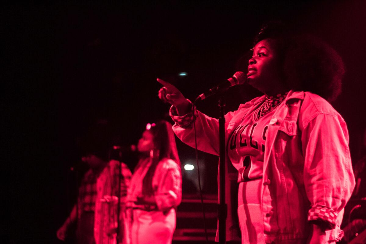 Big Freedia and her dancers maintained a high level of energy while performing songs like “Karaoke” and “Gin In My System” amid twerking breaks (of course), shoulder bounces, and mid-air splits. At one point in the evening, Big Freedia invited ten members of the audience on stage for a group twerk session. At the end of Big Freedia’s performance, DJ Juane Jordan played Whitney Houston’s “I Will Always Love You,” where the entire venue sang every word, sometimes unsuccessfully hitting all of the high notes. This was followed by a bounce version of R & B singer K Michelle’s now-viral video of her screaming at a young woman to “get the fuck off of [her] porch.”