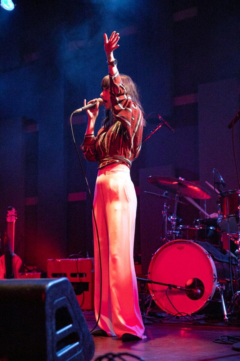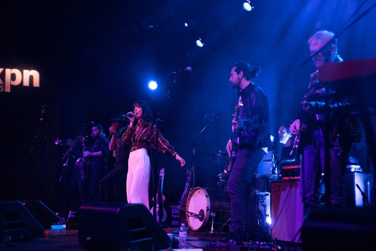 Okay, bird puns aside: Sister Sparrow is the project of singer-songwriter Arleigh Kincheloe; the Dirty Birds are her soulful seven-piece backing band who cover instrumental duties, ranging from saxophone to harmonica, allowing the frontwoman to focus her energy on her powerfully belted vocals and charismatic performance style. And she has an abundance of energy — commanding every inch of the stage with ease, Kincheloe led the band through today’s set of fast-paced, catchy songs that masterfully blend genres from modern pop to old-school blues.