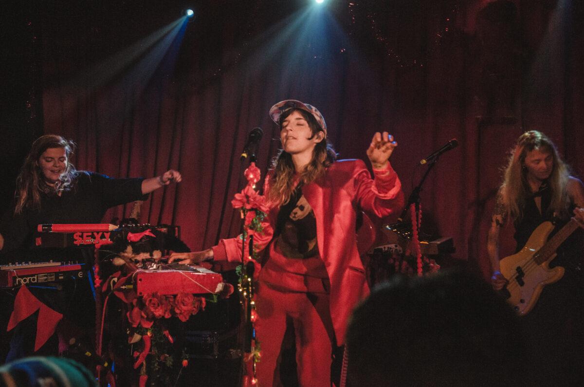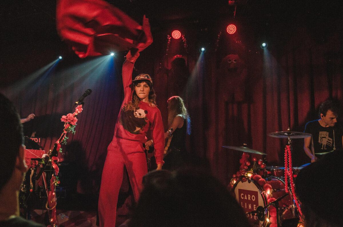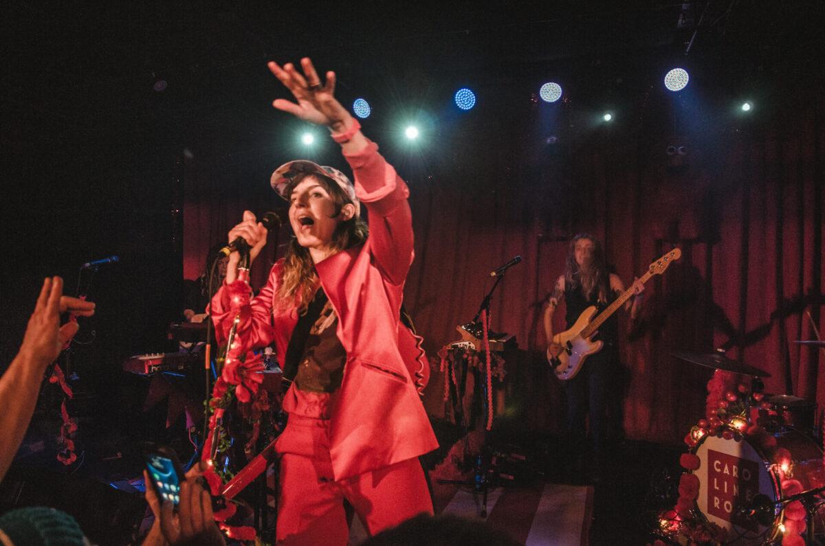 Sporting a red Armani dinner jacket that “cost more than her soul,” the ever unpredictable Caroline Rose delivered an electric set to fans at Underground Arts Friday night. Standing on a stage that was a total explosion of red – her signature – she kicked off the night with four songs from her newest LP, Loner, in the original order that she intended them to appear on the tracklisting. She promised us all the hits “since we paid good money to be there,” so she gave us “To Die Today,” “More of the Same,” “Cry!” and “Jeannie Becomes a Mom” one after the other.