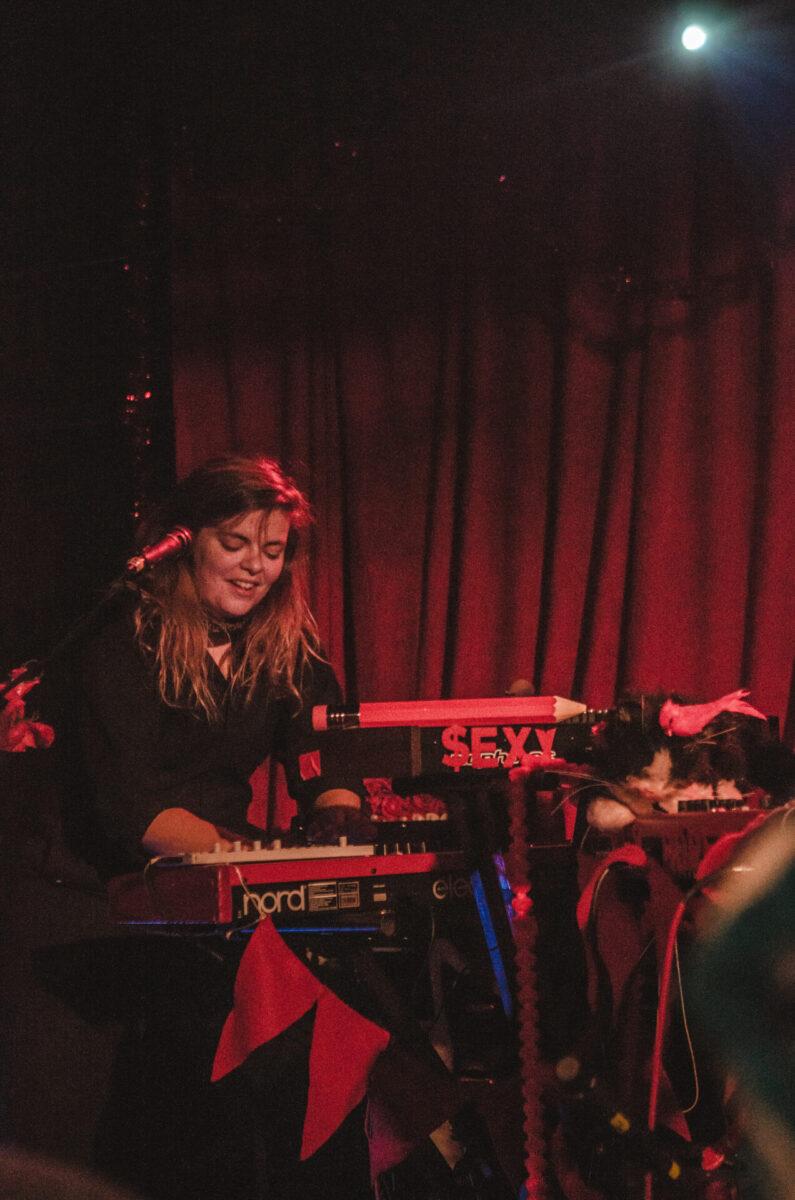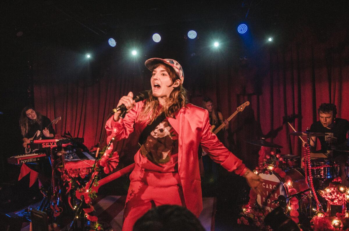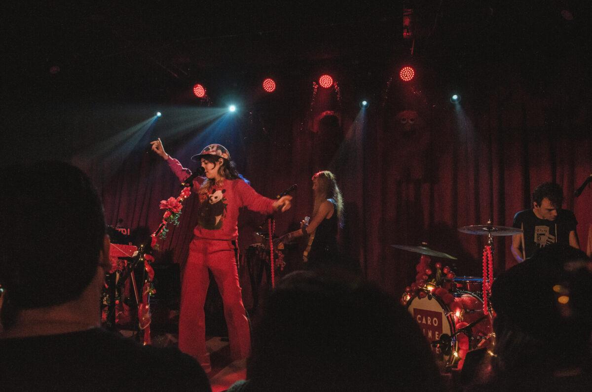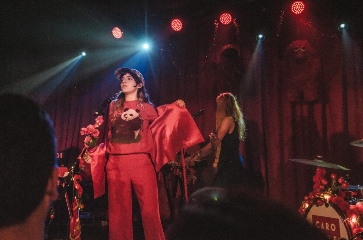 Sporting a red Armani dinner jacket that “cost more than her soul,” the ever unpredictable Caroline Rose delivered an electric set to fans at Underground Arts Friday night. Standing on a stage that was a total explosion of red – her signature – she kicked off the night with four songs from her newest LP, Loner, in the original order that she intended them to appear on the tracklisting. She promised us all the hits “since we paid good money to be there,” so she gave us “To Die Today,” “More of the Same,” “Cry!” and “Jeannie Becomes a Mom” one after the other.