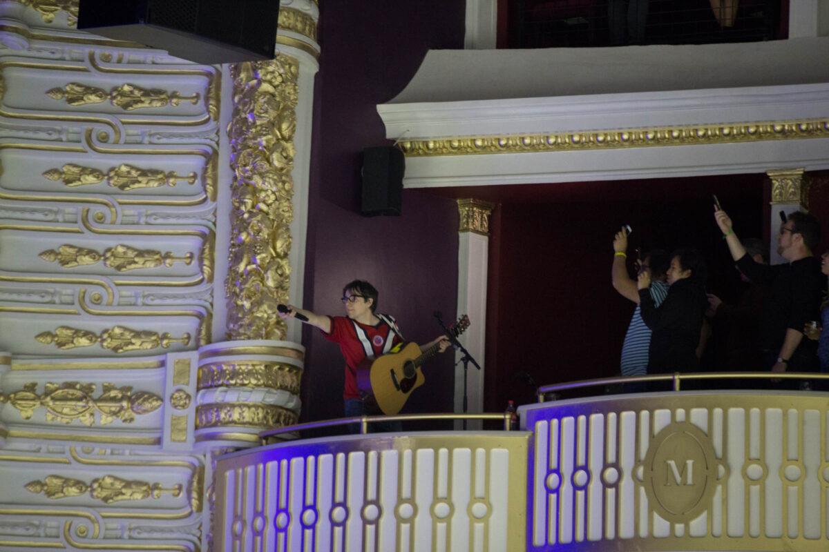 Additionally, during a cover of “Longview” by Green Day, Rivers ran off stage and up to the second mezzanine where there was a microphone and an acoustic guitar waiting for him. The crowd sang along to “Island In the Sun” watching Rivers in the corner of the auditorium, and then he slightly pumped up the volume for a cover of “Take on Me” by A-ha.