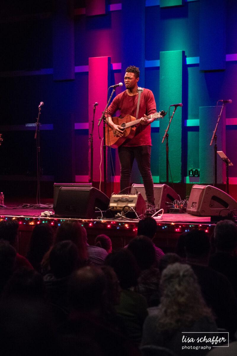 The program took two passes across the round, with each performer singing either a holiday original or a classic. The featured performers followed; first, Matthew Schuler of NBC’s The Voice sang “Mary Did You Know” by Michael English and “Hallelujah” by Leonard Cohen, the latter of which got him noticed on The Voice. Guitarist Danny Black (aka Dan Schwartz of Good Old War) accompanied Schuler on the latter, then delivered a shredding solo guitar performance of “Carol of the Bells,” Helen’s favorite holiday song.