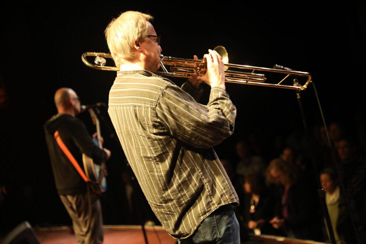 Over the course of eight songs in 30 minutes, Cookie and his band grooved to the steady beat of drummer Freddy Berman, with flourishes from John Swana on the Electronic Valve Instrument (or, as the man at the mic screamed at several turns, “SPACE FLUUUUUTE”) with Jim Stager on bass and guitarist Tom Spiker. At the half-way point of the set, a trombone came into the mix as well amping up the energy from a breezy stroll to a brisk jog.