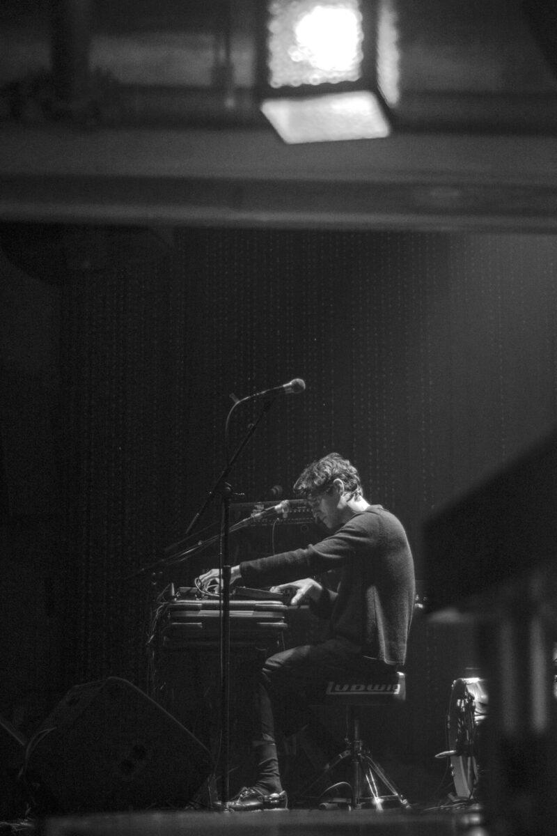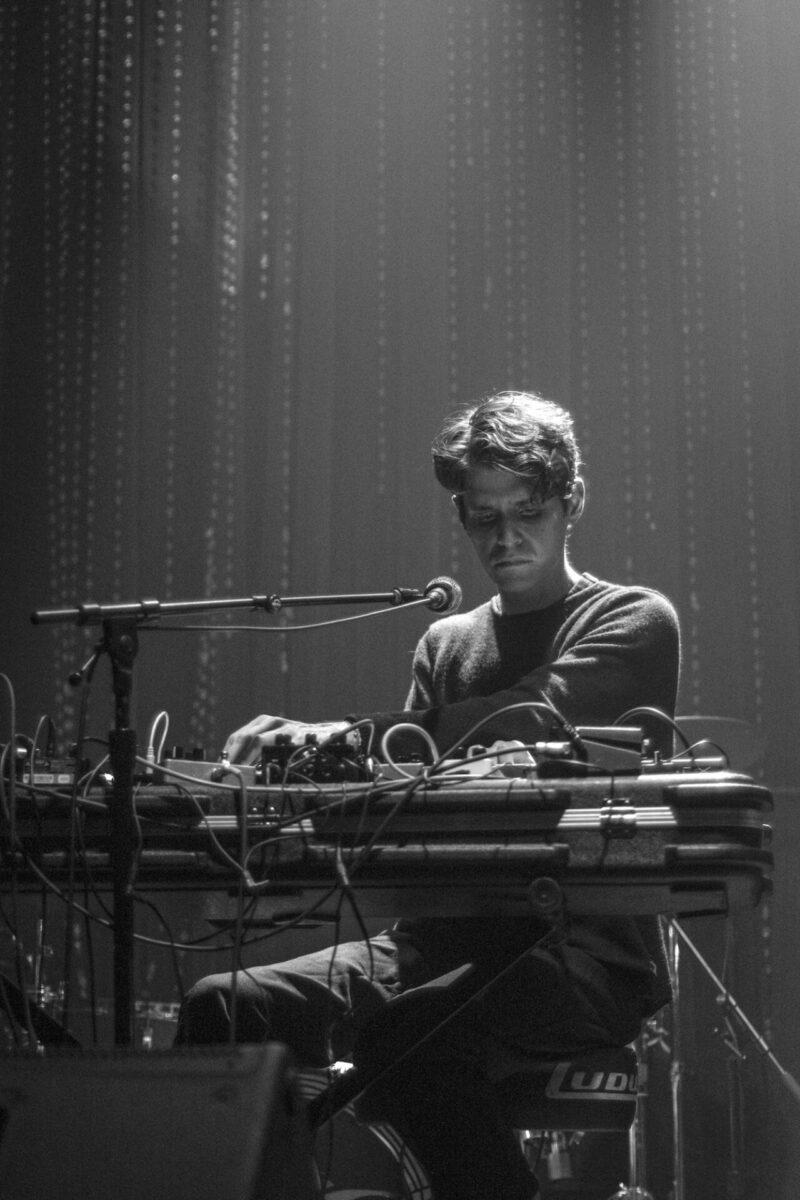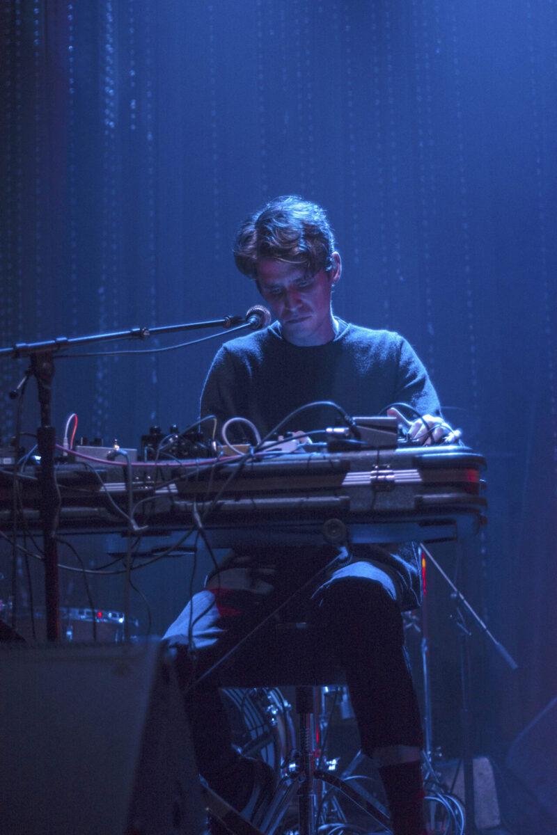 Skylar Skjelset opened the show with a solo set consisting of moody bedroom-trance music. A wave of ambient beach sounds gave way to slowly evolving grooves manipulated by a table of synths and other magical electronics. His minimalist melodies were allowed to transform at their own pace while still keeping the audiences heads bobbing.