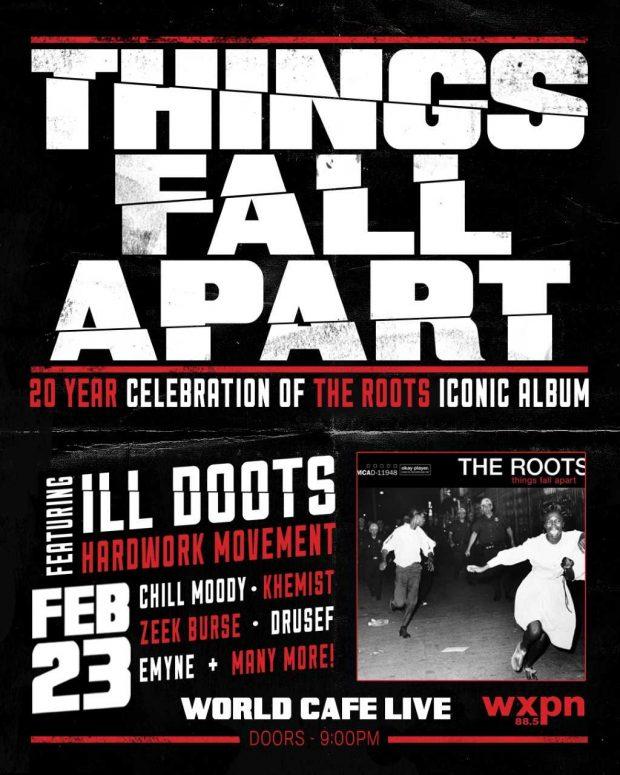 ILL DOOTS and friends will celebrate the 20th anniversary of The Roots’ Things Fall Apart at World Cafe Live