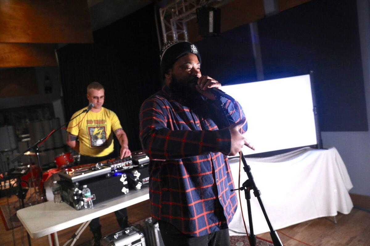 Reef once again makes a formidable entrance to album opener “God + The Algorithm” and its horror movie soundtrack tones; he’s lighthearted yet badass on a snippet of The Majestic‘s title track, a vibe that carries over to a full performance of the lead single “Stay Golden.” At this point, though, the tone of the session switches dramatically.