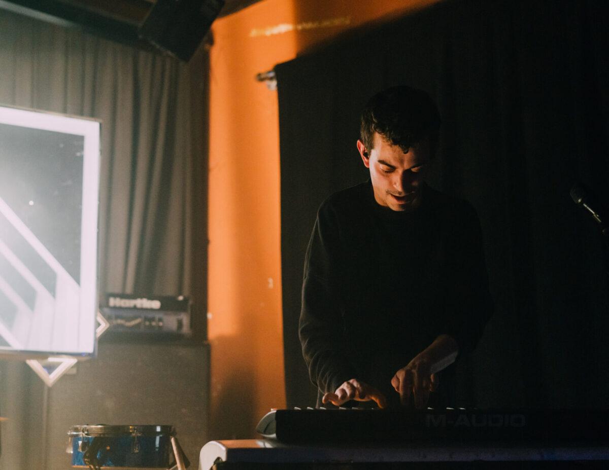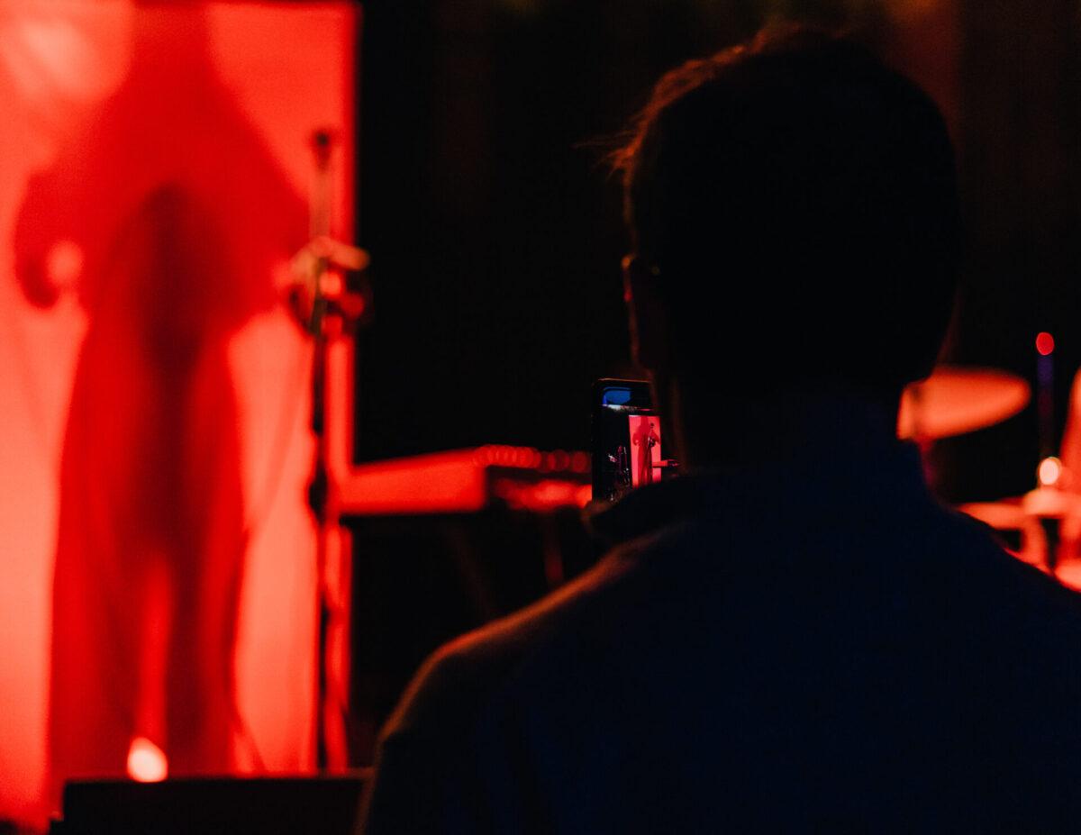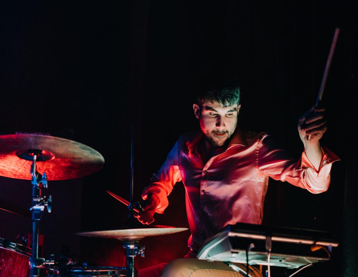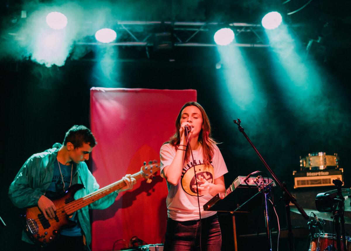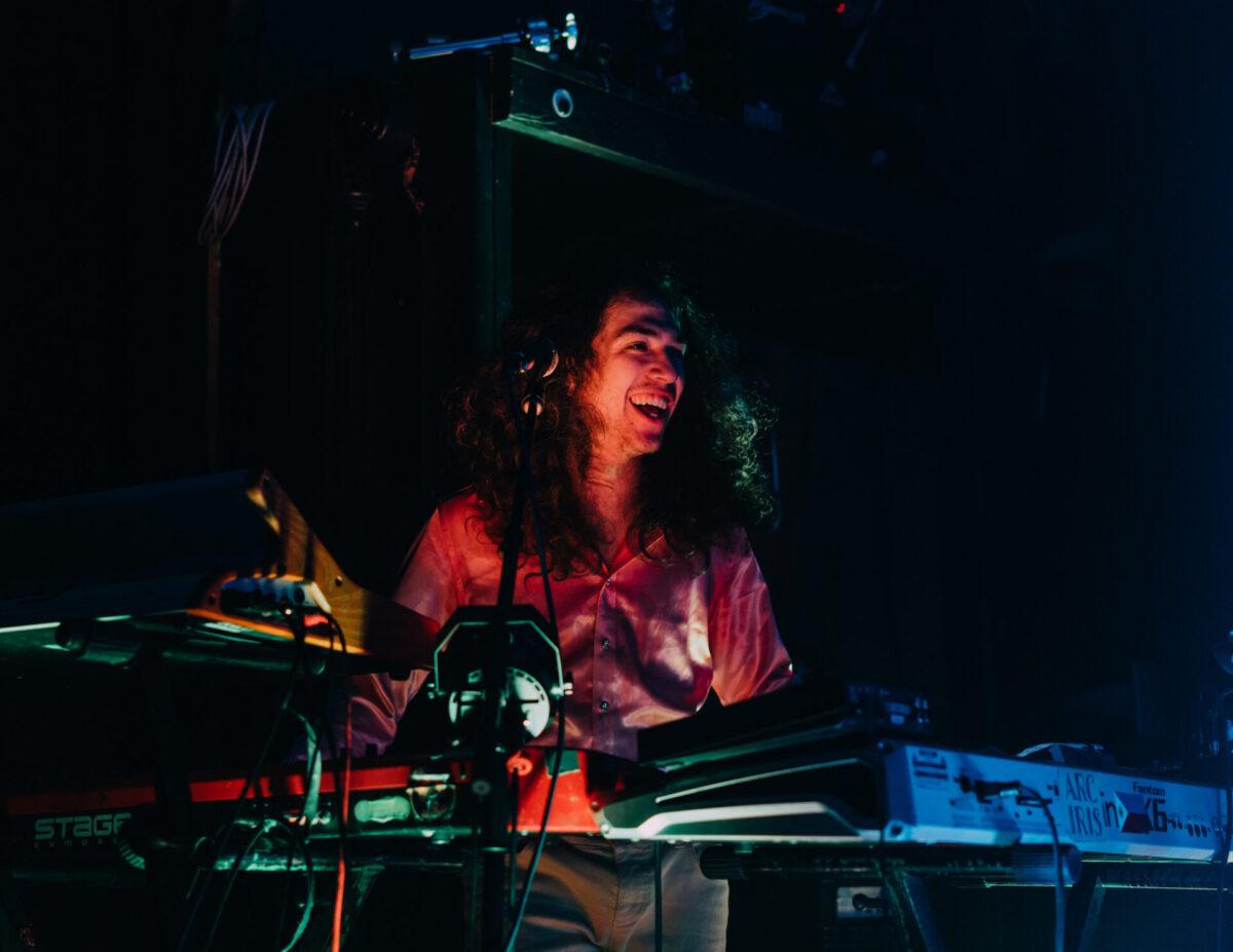 Arc Iris started their show with Adams’ shadow being seen through a large pink fabric box. When she fully emerged, we could see she was wearing a sparkling headpiece and pink jumpsuit. Meanwhile, keys player Zach Tenorio Miller and drummer Ray Belli wore matching pink satin shirts. This is a group that embraces theatricality; Arc Iris had choreographed dance moves, purposeful light changes, and Adams had two outfit changes — impressive considering the tiny space of MilkBoy’s stage! It is hard to identify the groups genre but, their new label described it as “pop-prog” so I’m going with that. The set focused on Arc Iris’ new album Icon of Ego, and it is deserving of your attention.