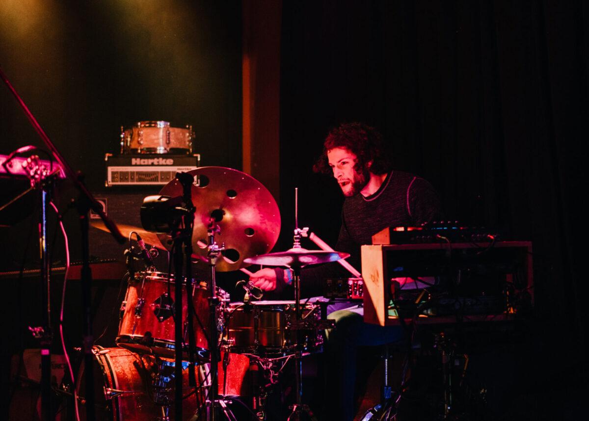After a hefty change to the stage setup, Square Peg Round Hole lit up their new stage lights and started to play. The percussion-driven instrumental trio pulls elements from post-rock, electronic, ambient, and contemporary classical genres. They use an array of instruments including bells, drums, glockenspiels, vibraphones, synthesizers, and probably other things that I missed. They thanked the crowd for staying out late on a cold Thursday night to see them, and I am glad I did.