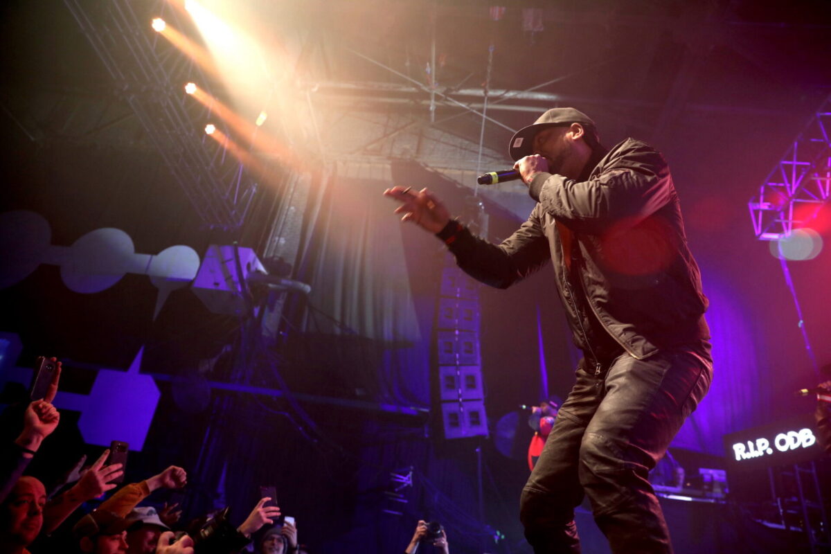 The heavy, cavernous beat for “Bring Da Ruckus” drops and The RZA, Ghostface, Raekwon, Deck and GZA rush the stage, the first wave attack of the killer bee swarm.