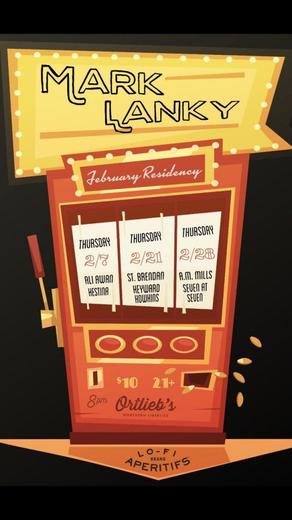 Watch the video below, and check out the poster for Lanky’s February residency at Ortlieb’s where he’ll be joined by notable names like Ali Awan, Heyward Howkins, A.M. Mills and more.