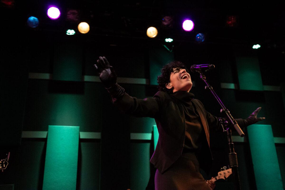 Many critics have compared King’s sound and persona to Michael Jackson and Prince. These parallels are emphasized in her stage performance. You can hear Prince in King’s breathy, pointed vocals. You can see Michael Jackson in King’s devastatingly fashionable outfit and her near-moonwalk dancing. During “Look At Me Now,” the third song of the set, King sang about her hard won successes as the stage lights changed to purple. If her sequin jacket and shoulder pads weren’t enough to convince you of a King-Prince-Michael connection, the purple lights coupled with King’s curly hair bopping to the music drove the point home.