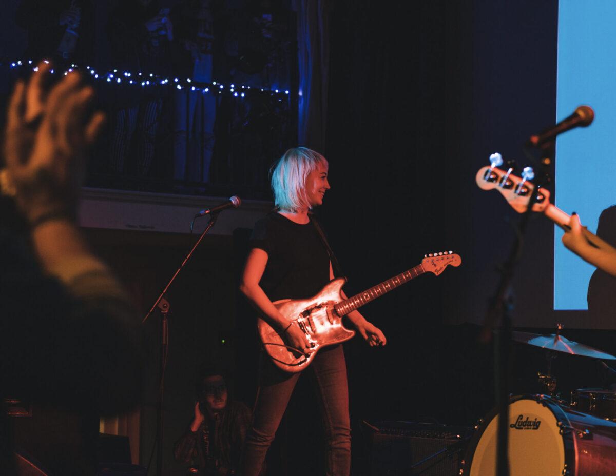 Bundled up music fans made their way into PhilaMOCA late last month to see a gig headlined by Nashville-based grunge pop trio Daddy Issues. The band was recently in Philadelphia supporting The Menzingers this past November. Apparently there was a man in that crowd who yelled “Mind your business” to drummer Emily Maxwell after she spoke to the audience about being kind to each other. Come on Philly, let’s be better! I am glad that Daddy Issues had a much better experience in the city this time around. I can totally say that seeing them live turned this casual listener into a full blown fan, and I look forward to hearing more from them…as well as their openers.