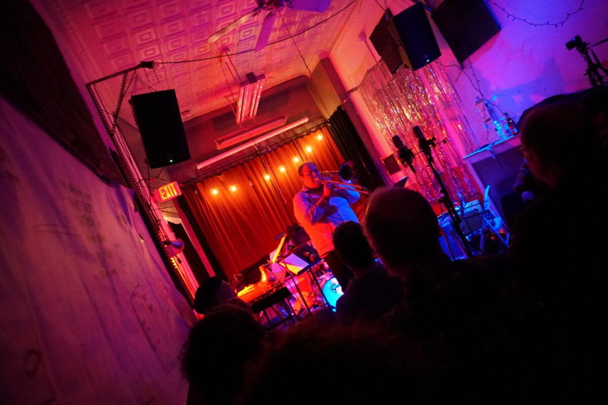 If you’ve seen the flier for Encounters at the Mothership pinned to a corkboard in your local coffee shop, you’ve probably stared in awe at the wildly ambitious line up of four nights of noise, jazz and experimental music assembled by klezmer and jazz trombonist and curator Dan Blacksberg. You’d also noticed something a little more alarming: the venue. Known as the Mothership, the venue resides in the same space that housed the former Eris Temple, and while being a staple of the Philadelphia underground music scene, it isn’t the most accessible. Known for raucous punk and experimental shows, Mothership has recently sought to expand the depths of its programming. Five minutes into Blackberg’s collaboration Out of Heaven on day one of Encounters, it became apparent that expansion would be the recurring theme of the four night affair.