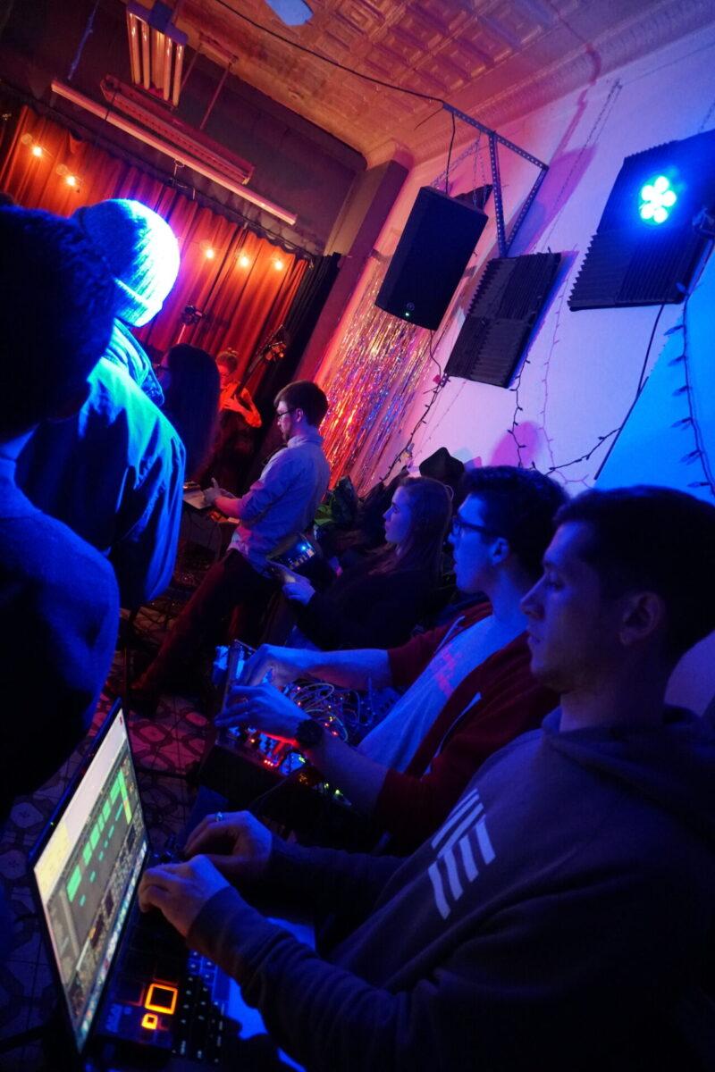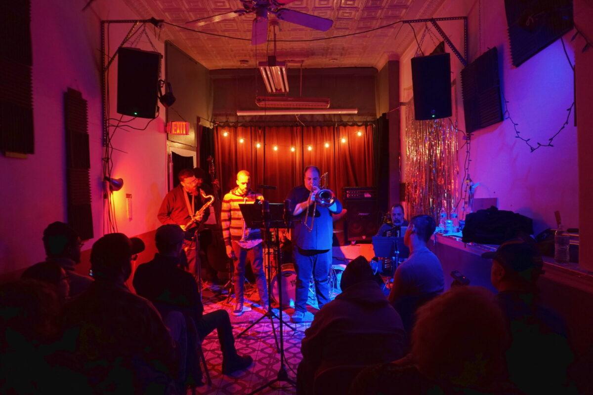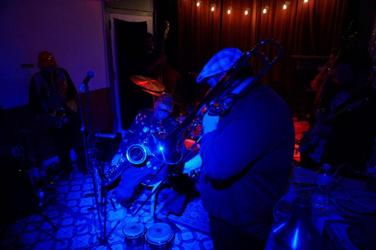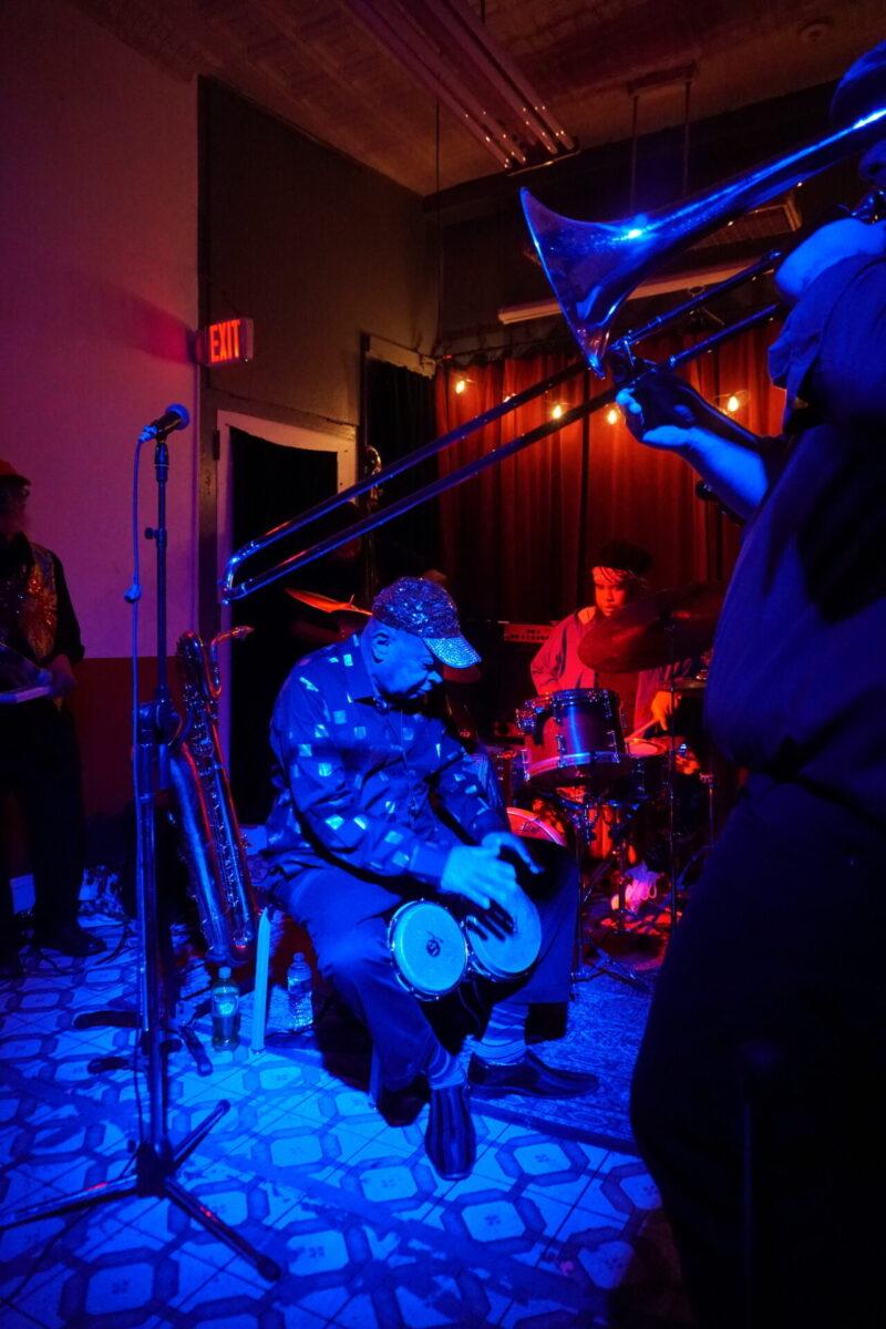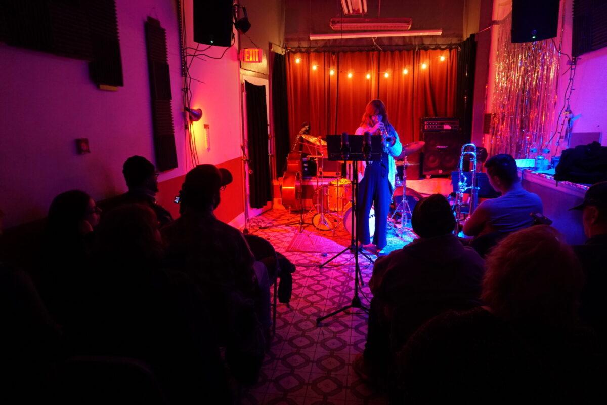 Under the wintry backdrop of 52nd Street’s gated storefronts, Chinese takeout spots, and fading neon lights, musicians as eclectic as pedal steel artist Susan Alcorn and legendary Arkestra bandleader Marshall Allen descended the steps (and then ascended them again — Mothership is basically a magically converted row home with just, like, the weirdest set of rickety stairs to enter) to sonically entrance us.