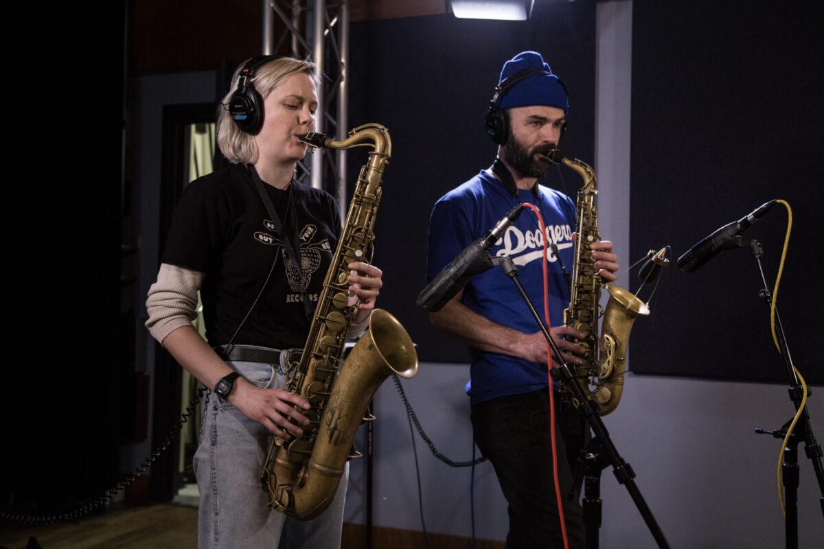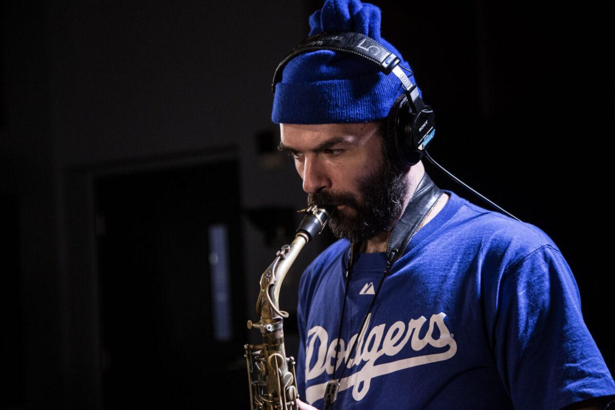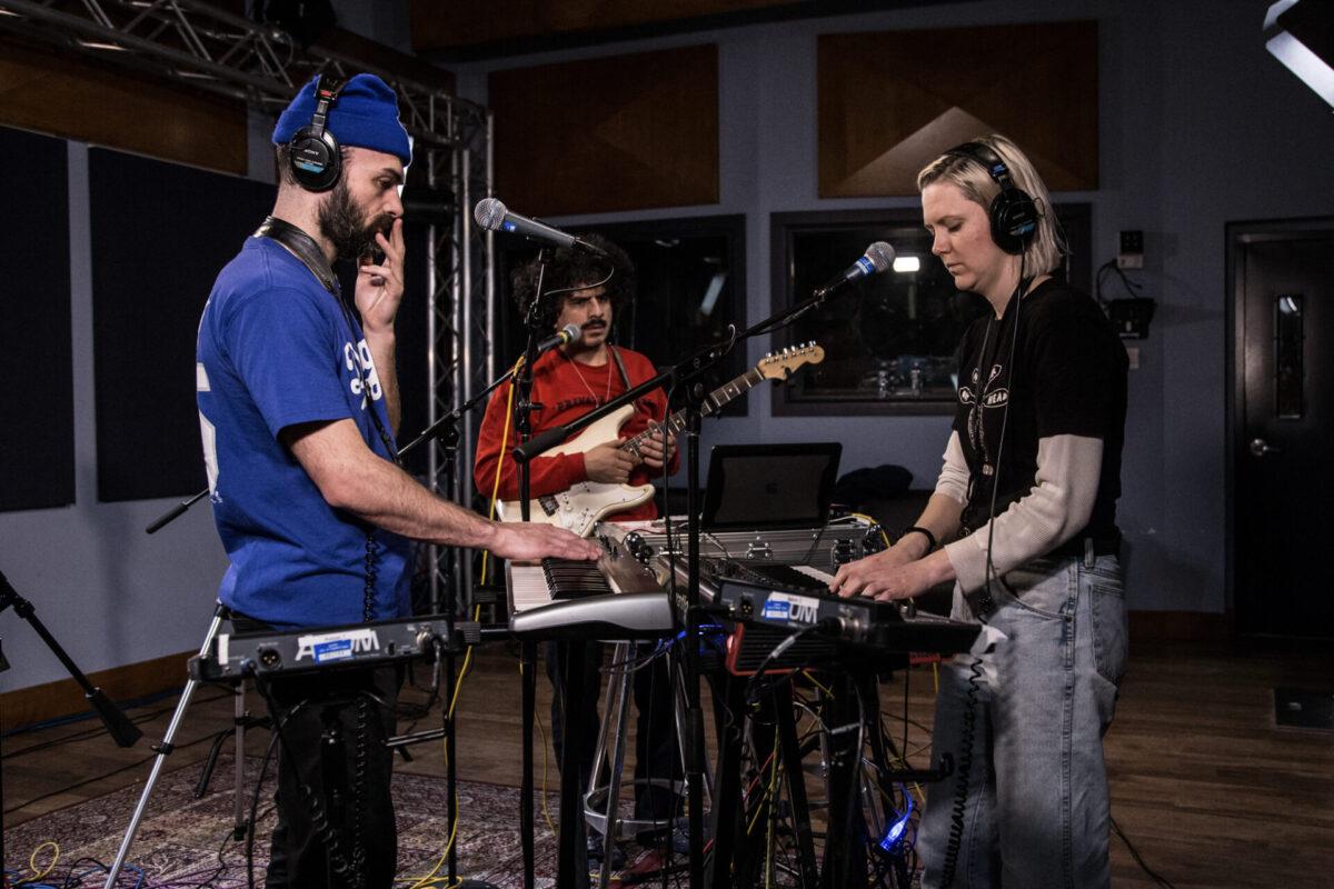 The first thing you need to know about Helado Negro’s live setup is that there are a lot of things to plug in. Meticulously crafted loops and circuits send vocals and instruments through processors and effects racks, resulting in an exquisitely dreamy soundscape. The second thing you need to know is that, for this session, Helado Negro opted to perform drumless arrangements of the new songs. Stripping away the beats allows the songs to billow and bloom in a way unlike their recorded counterparts. The session begins with the album’s latest single, “Running.” A gently pulsing bass synth and a heavily processed guitar underpin Lange’s fluttering vocal. Next is “Please Won’t Please,” which prominently features Morgan’s treated saxophone. It soars and swirls alongside Lange’s lyrics about demonstrative art and human empathy. Finally, there’s “Pais Nublado,” a bilingual song that Lange has referred to as a kind of guidepost for when his future in music felt uncertain. For this song, Morris joins Morgan on sax for a rare and delightful sight in our studio.
