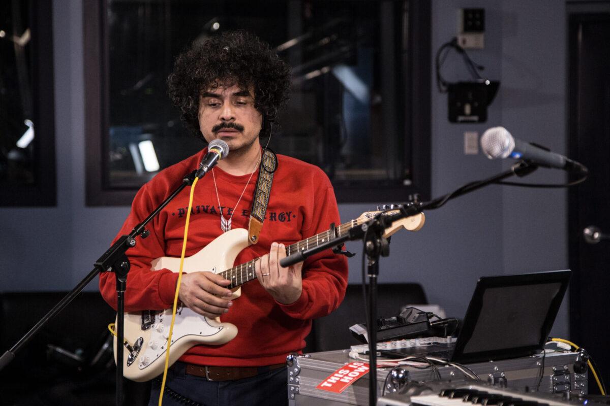 Joining us in the studio for this Indie Rock Hit Parade is an artist who is no stranger to our performance space. Roberto Carlos Lange has been releasing music as Helado Negro for just over a decade and, in that time, has become a reliable source for intimate, expressive music. Combining sweeping electronics with rhythms gleaned from Floridian hip-hop and his own Ecuadorian heritage, Helado Negro’s latest album is This is How You Smile. The new songs expand on the socially- and culturally-minded lyrics of his last album, 2016’s Private Energy. For that album, Helado Negro performed a memorable World Cafe session accompanied by a string quartet (including IRHP session veteran Renata Zeiguer on violin) and a pair of tinsel-clad dancers. While on tour with Beirut earlier this year, Lange returned to our studio with two of the versatile musicians who appear on his new album: Angela Morris and Nathaniel Morgan. Both provide synth and saxophone parts on the record, and they reprise their instrument-hopping roles here.