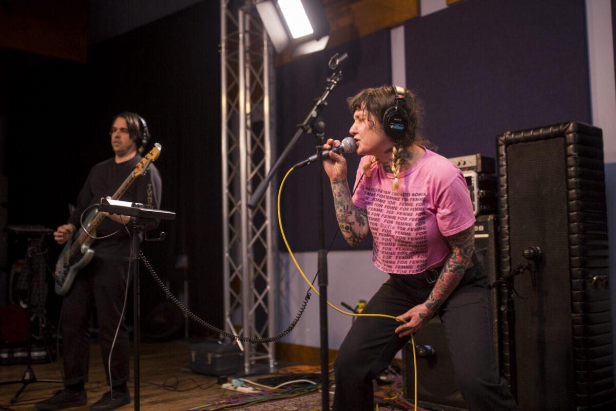 In addition to that gripping grand finale, Low Dose played three other tracks from their record at WXPN studios — the thundering “Right On,” which dovetails into soaring anthem “For Sure,” as well as the simmering low point of “Low” (the band’s quasi theme song, as it were). Through all of these songs, Rosenberg makes her pain felt, but not in a narcissistic way: as I put it when I wrote about the band on NPR Music earlier this month, the album “might come from a deeply personal place, but it puts [her] experience on a broader scale, reflecting on the cycle of abuse, on manipulative behavior, on vindictive misogyny, and the ways that a gutting personal low can help one find inner strength.”