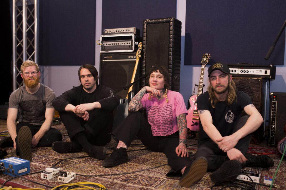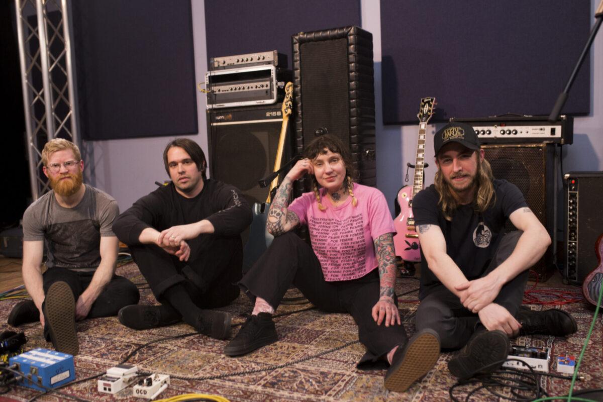 All that pent-up anger, frustration, hopelessness, and rage finds a release in Low Dose’s gutting, emotional debut record, as well as their live sets — you can see it in the above video of “Sinking,” recorded live for The Key Studio Sessions. The song is already roaring and racing, with Rosenberg and McGinnis swapping vocals about feeling trapped and isolated, suffocating in a toxic environment, when the music breaks into a free-form noise jam at the three-quarters point. The three bandmates with stringed instruments head directly to their amps, jam the necks along the speaker, and begin strumming and scraping their strings feverishly. At the drums, Smith is moving in 180-degree rotations, ambidextrously slamming different parts of the kit, goading the rest of Low Dose on until it comes to a breathless finale. Rosenberg and McGinnis are both on the floor catching their breath as the humming amps cycle down. Slowly, everybody gets up and walks away.