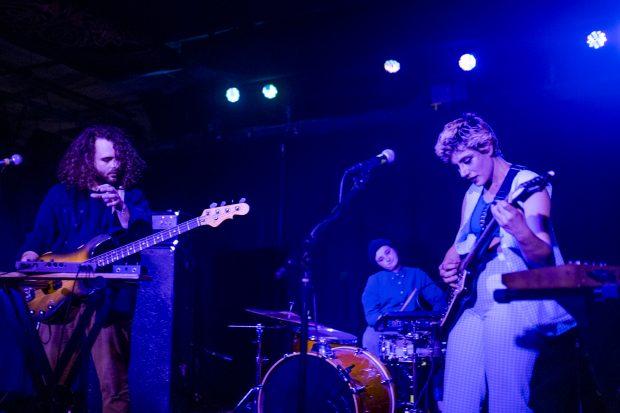 Opening the show was a trippy and fun set from sampler-driven solo artist Snake Boy Gang, the project of Madeline Rafter. (Their 2018 release Spit was recorded with Watter, and Rafter pulled double-duty by also playing drums in Strawberry Runners).