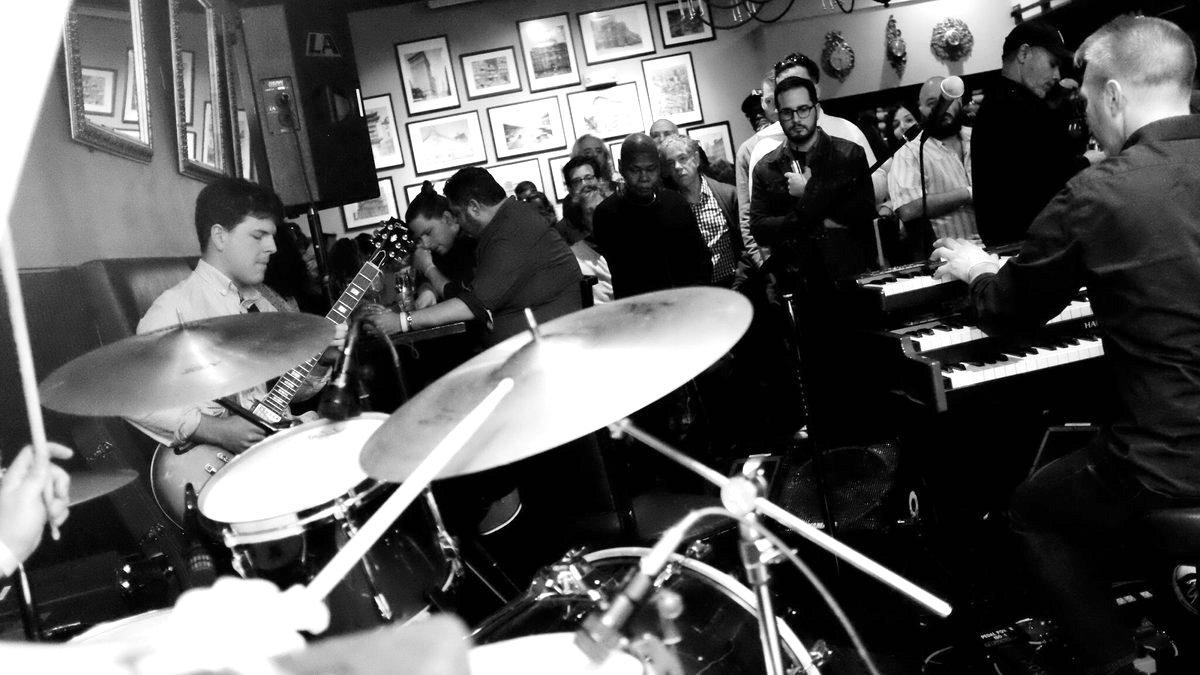 A swinging ensemble led by the core rhythm section of Michael Boone and his 12-year-old son Mekhi on drums. The chops were unreal, and inspired some serious air bass from the dude you see leaning in the window at the left.