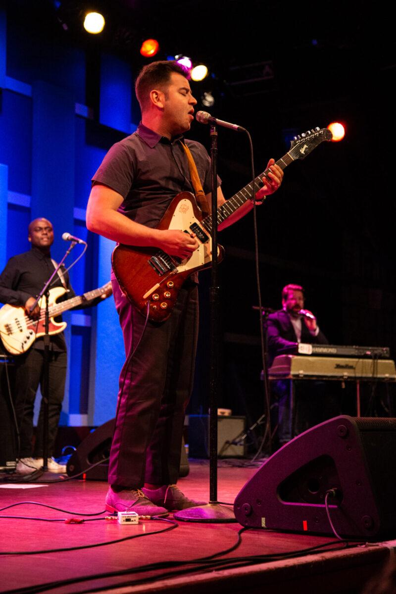 If you’ve ever wondered where Eli “Paperboy” Reed‘s stage name comes from, he told the moving story just last week, via an Instagram post, of the gray newsboy cap he found in his grandfather’s closet that helped him build his musical identity. Six albums later — and sans the hat, which he wore so much it fell apart — Eli “Paperboy” Reed stopped by World Cafe Live Friday afternoon to fill the second set of a Free at Noon doubleheader with some spirited jazz- and soul-inspired tunes.