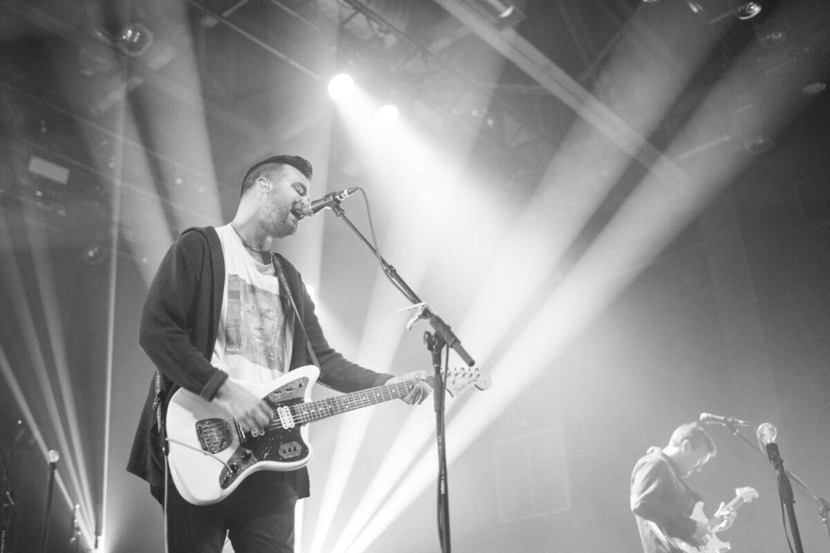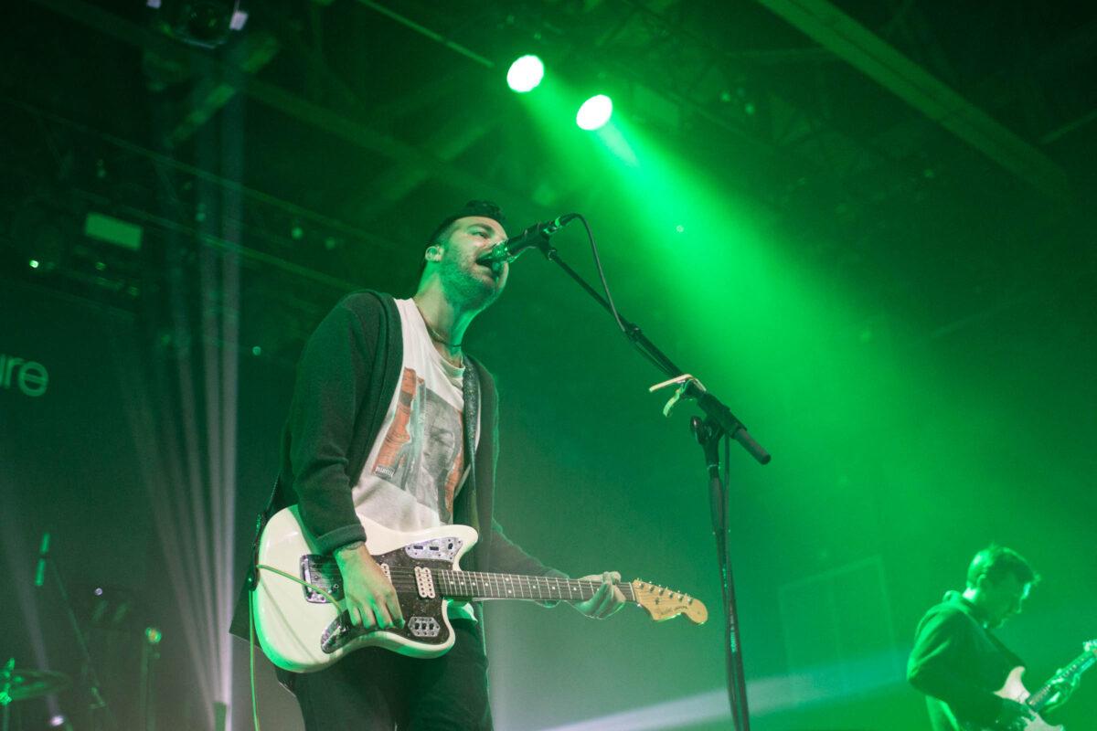 Midway through the set, lead vocalist and guitarist Jon Simmons asked for the venue’s drink special which, for the night, was dubbed “Tiny Raindrop” in honor of a standout track from Missing. The band got their drinks brought out and the five members all cheers’d one another before diving into “Postcard.”